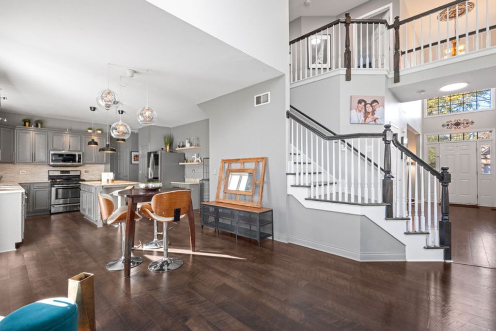 Welcome to this stunning Contemporary-style home in the Gates Creek West subdivision! This beautifully updated property features an open-concept main floor with waterproof hardwood laminate throughout the living and dining areas. The family room boasts a stunning fireplace perfect for cozy gatherings, while the modern kitchen impresses with granite countertops, elegant cabinetry, and a large island-ideal for entertaining. Upstairs, enjoy 4 spacious bedrooms, including a primary suite with a walk-in closet, and 3.5 fully renovated bathrooms. The finished basement offers incredible versatility with a recording studio, two additional bedrooms, a full bath, and a large entertainment space for movies, sports, or game nights. The outdoors are a true retreat: relax by the fire pit, host friends under the pergola, or enjoy the extended backyard that backs up to a private forest, offering unmatched privacy and tranquility. Additional highlights include new water heater, 2 attics (garage & second floor), new roof (2023), new siding (2023), new gutters, updated kitchen & floors, and an extended driveway. Located in the Yorkville school district, this home combines modern living with an exceptional location. Don't miss your chance to make this spectacular home yours!