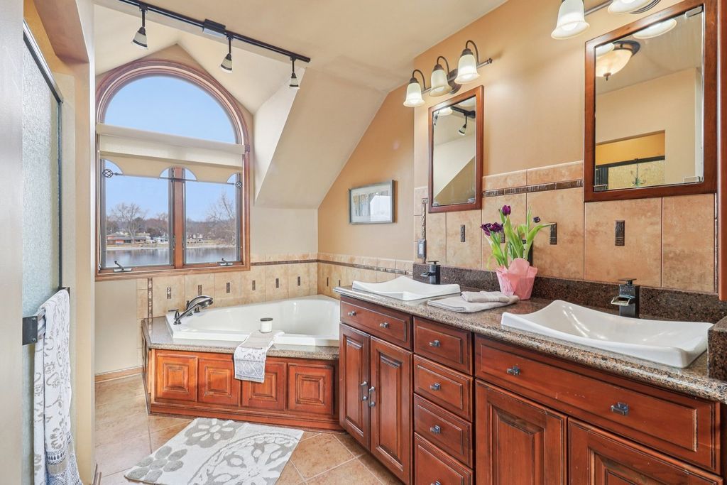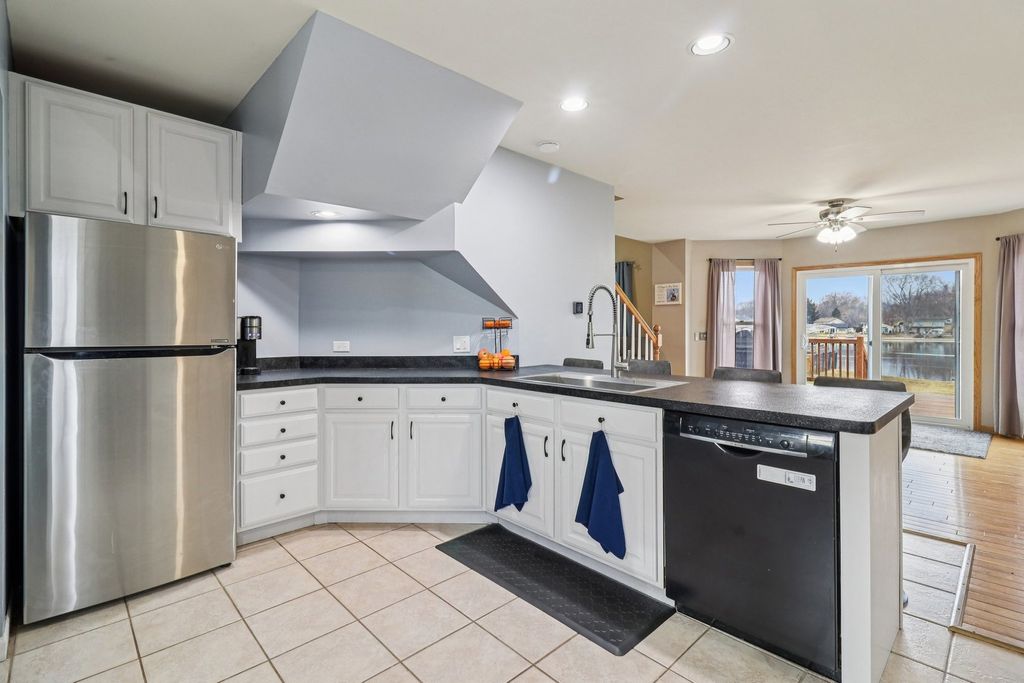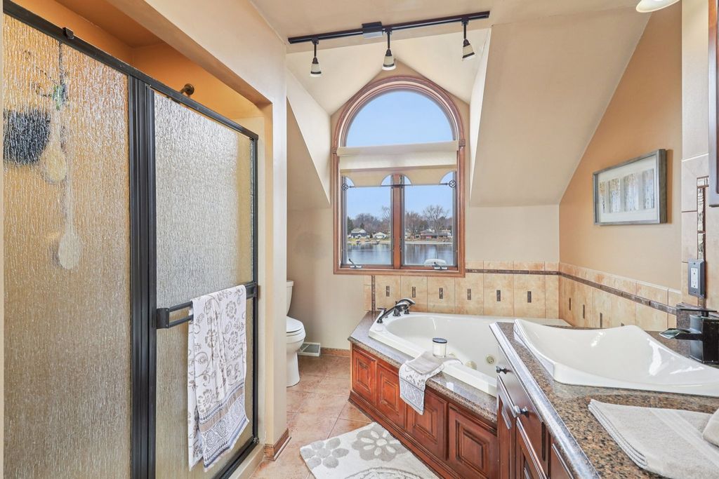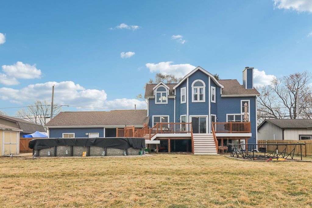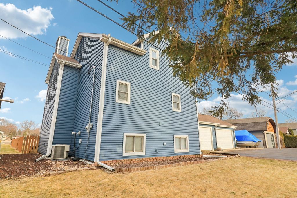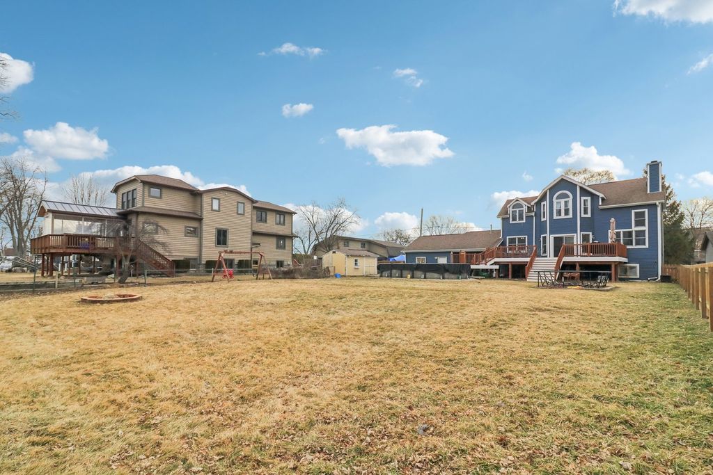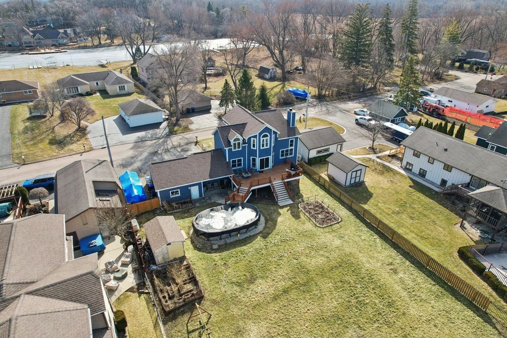 Live the vacation lifestyle every day in this stunning 3-bedroom, 3-bath waterfront home in Johnsburg! Perfectly positioned on a deep lot with approx. 90 feet of frontage, this home offers direct access to the Fox River and the Chain O'Lakes. The main level dazzles with soaring vaulted ceilings and an open-concept flow, anchored by a cozy fireplace with tile surround-the perfect spot to unwind after a day on the water. Step out from the living room onto the massive deck (2022), ideal for summer BBQs while overlooking your scenic riverfront yard complete with pool. The chef's kitchen features ample cabinetry and flows seamlessly into the dining and living areas. Upstairs, retreat to the massive Primary Suite , complete with a luxurious ensuite bath and walk-in closet. The finished English basement adds incredible value with a large rec room, 3rd bedroom, and full bath-perfect for guests or an in-law arrangement. Car enthusiasts and boaters will fall in love with the oversized 32' x 25' garage (fits 3+ cars or all your toys!) as well as a spacious carport on the side of the garage. Don't miss this rare combination of water rights, square footage, and storage! Roof 2017-Fridge, Washer, Dryer 2018-HVAC/Humidifier 2020-Pool 2021-Siding 2022.