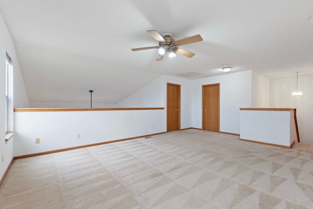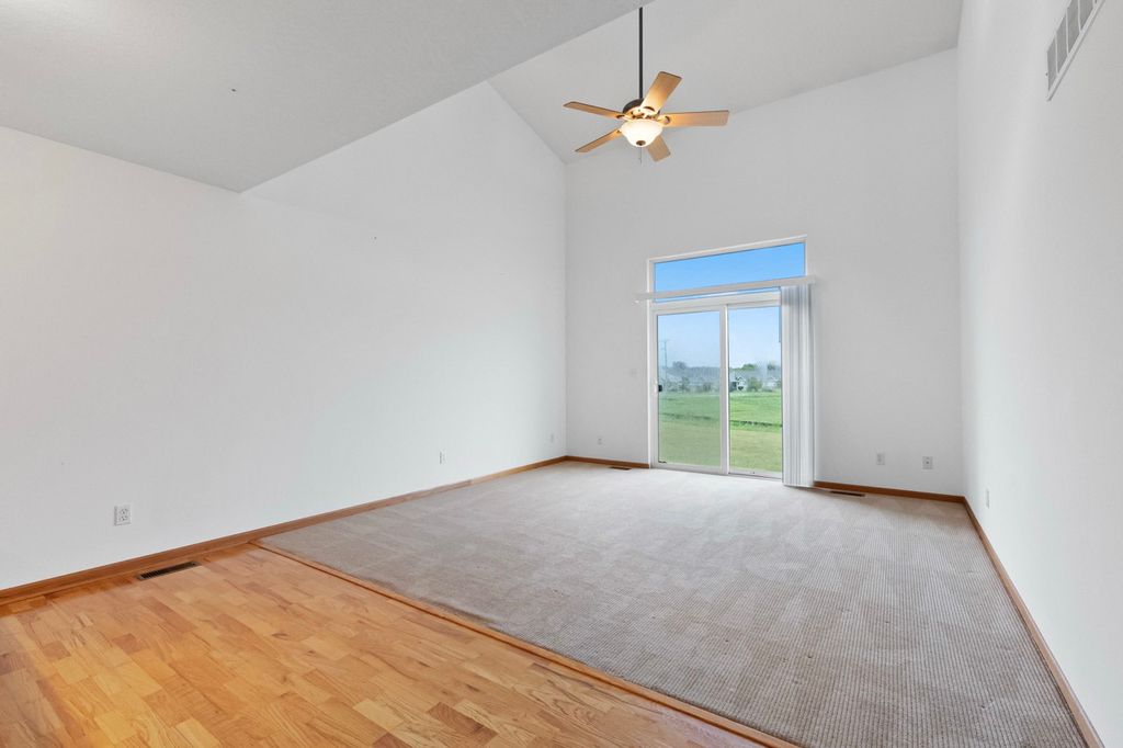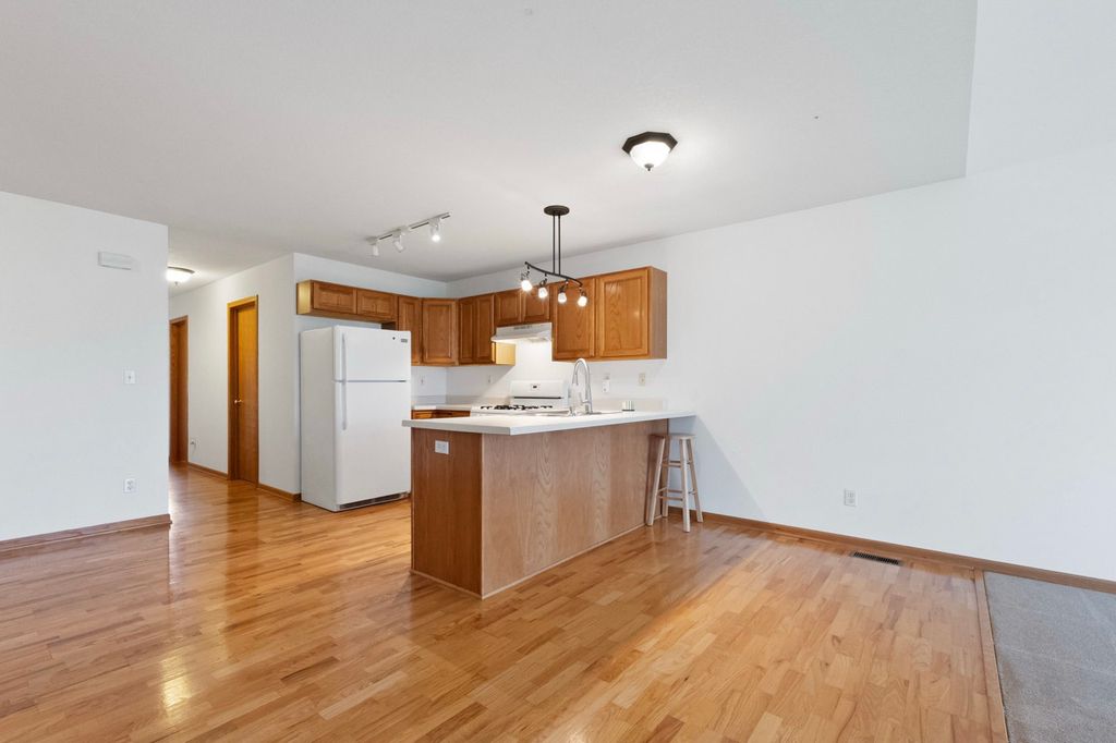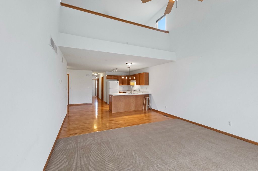 Charming ranch end unit conveniently located near Sycamore Middle School, close to walking paths, and just minutes from downtown Sycamore. Offering both convenient single-floor living and additional space upstairs, this home offers comfortable living that nicely meets the needs of all buyers. Enjoy easy living with no lawn care or snow removal. The first floor offers an open concept with vaulted ceilings, a main bedroom with a walk-in closet and convenient laundry and half bath, and access to a private concrete patio. The fully equipped kitchen includes a breakfast bar and dining area with hardwood floors. Upstairs, there's a spacious loft overlooking the living room, along with a bedroom and full bath. The property also features a two-car garage with opener, deep crawl space for storage, and recent updates include HVAC (3 years old), new dishwasher, washing machine, garbage disposal, and a newer refrigerator. Quick close possible as this home is move in ready!