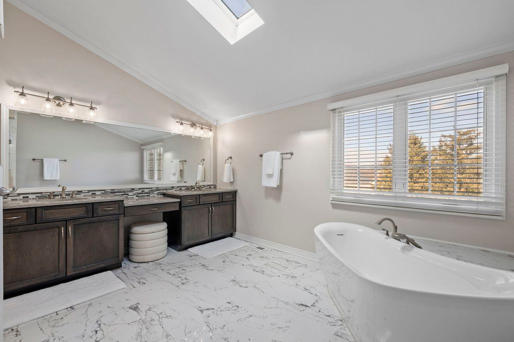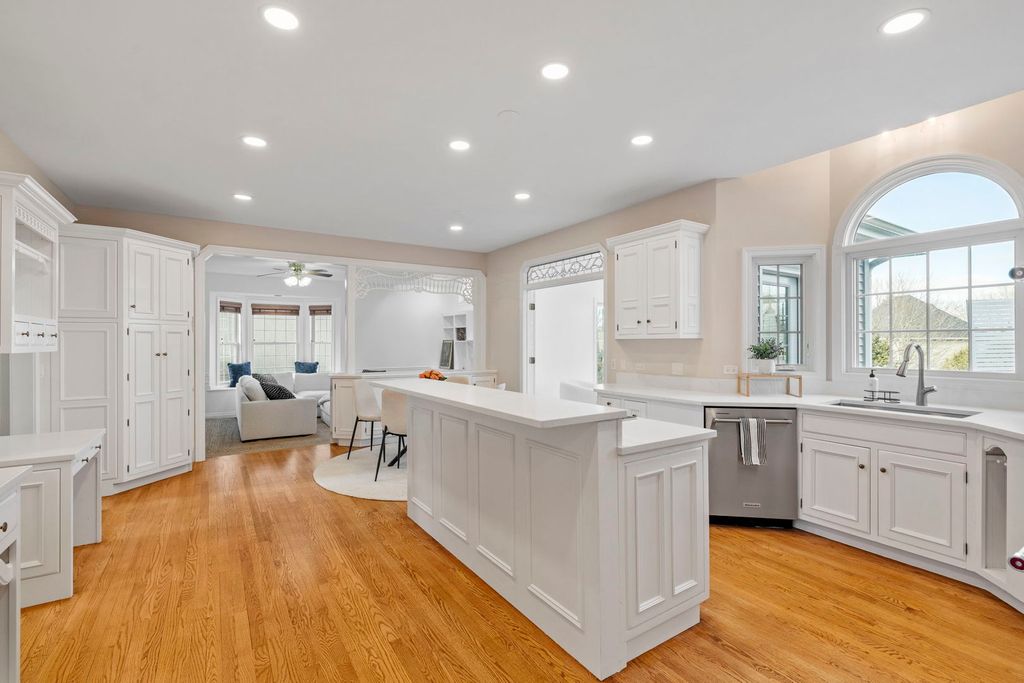 Located in a very sought after clubhouse community, this former Cavalcade custom home in Breckenridge Estates offers over 5500 square feet of finished living space designed for luxury, flexibility, and modern living. With 5 bedrooms and 5 bathrooms, every inch of this home has been thoughtfully updated and meticulously maintained. The heart of the home is the fully renovated 2025 kitchen, showcasing timeless white cabinetry, striking quartz countertops, and a large center island with built in cooktop. Premium features include double ovens, a counter depth refrigerator with lower pull out freezer, built in microwave, trash compactor, and extensive lighting enhancements that create both function and ambiance. Fresh paint, updated lighting, and new carpet complete the refreshed interior. All bathrooms throughout the home have been completely remodeled with high end finishes, offering a clean, sophisticated aesthetic and spa-like feel. The walkout lower level is perfectly designed for multigenerational living or extended guest stays. This finished space includes a full second kitchen, a private bedroom, and a beautifully remodeled full bathroom creating a comfortable and independent living arrangement while still feeling connected to the main home. Natural light fills the interior through more than 70 Marvin Infinity windows and doors. A bright sunroom provides the perfect place to unwind, while the spacious dining room is ready to entertain any size get together. Situated on a generously sized lot graded specifically for the walkout design, the backyard offers expansive flat green space ideal for entertaining or everyday enjoyment. Exterior highlights include a wrap around composite deck, paver driveway, and a 3 car garage with built in storage. Located within the highly regarded Indian Prairie School District 204 and attending Spring Brook Elementary School, Gregory Middle School, and Neuqua Valley High School, this home offers space, flexibility, and high-end updates in one exceptional package. BE READY TO FALL IN LOVE!!!!