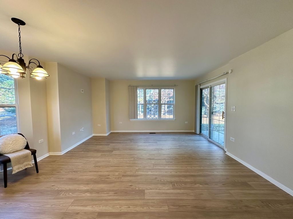 **NEW FLOORING BEING INSTALLED 3/7 + freshly painted living room and trim!!** This fantastic 2 bedroom, 2 bath RANCH END UNIT is now better than new! Maintenance-free and investor and pet friendly! Enjoy true single-level living with an open, airy layout. The spacious family room and dining area flow seamlessly to a private covered patio, where pretty perennials will soon bloom - perfect for morning coffee or spring evenings. The light-filled kitchen features generous cabinetry, stainless steel appliances, and ample prep space. The primary suite offers an impressive walk-in closet and private ensuite bath. A second spacious bedroom provides ideal flex space for guests or a home office. Located in highly acclaimed Indian Prairie 204 schools, including Neuqua Valley High School. NEW A/C JUNE 2025! Monthly assessment covers water, lawn care, snow removal, and exterior maintenance. Minutes to Route 59, Metra, expressways, shopping, dining, and Frontier Sports Complex. Low-maintenance living in an unbeatable location. WELCOME HOME!