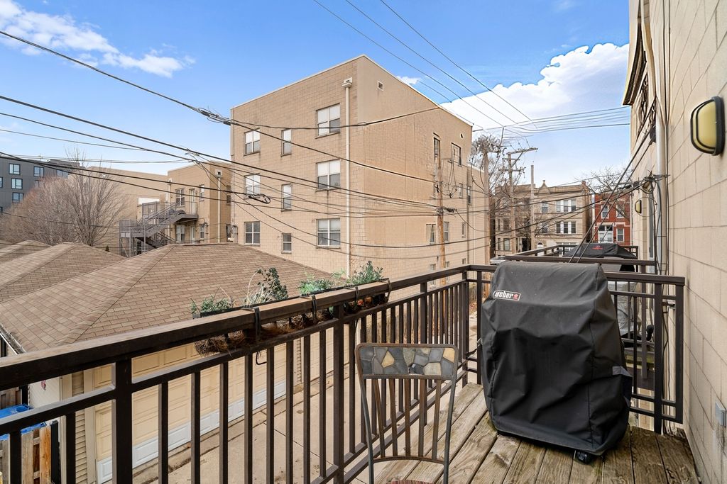 Sought-after townhome in the heart of vibrant Little Italy. Extra-wide layout with three levels of ample living space and a roof deck. Enter through the formal foyer and spacious den or office area, which features built-in furniture and frosted sliding doors for added privacy. The second level features an expansive open living space that flows seamlessly into the dining area and kitchen. The kitchen features granite countertops with a large breakfast bar, a spacious pantry, and stainless steel appliances, inviting you to step out onto your private balcony. Top level features three bedrooms, two full baths and side by side washer/dryer with additional storage. Maine suite with a large walk-in closet. Bath with double sinks and soaking tub. All closets with professional organizers and built in cozy nook on roof level. Enjoy your large deck with city views. Two car garage and gated front yard space. Centrally located to the Jane Byrne Interchange (90/94, 290), the 55 Expressway, Blue line, Taylor Street coffee shops, bakeries, and restaurants, UIC, and the Medical District (Rush Hospital, UIC Hospital, Stroger, Jesse Brown VA). 5-minute drive to Roosevelt and Halsted (Greek Town) Avenue shopping areas. 20-minute leisurely walk to the West Loop (Madison-Randolph) restaurant and shopping corridor. Pilsen also a 20-minute leisurely walk to the south, with all its new highly-rated restaurants, bars, and bakeries. Walking distance or short drive to top public and private schools (Skinner West, Whitney Young, Intercultural Montessori, Jackson Language Academy, STEM Magnet, Galileo Math and Science Academy, UIC Prep., St. Ignatius). City-maintained dog-friendly green areas, Arrigo Park, Sheridan and Fosco Parks (both with gyms and public pools), and the new Little Italy Chicago Public Library (with programs for children and teens) are all in your backyard.