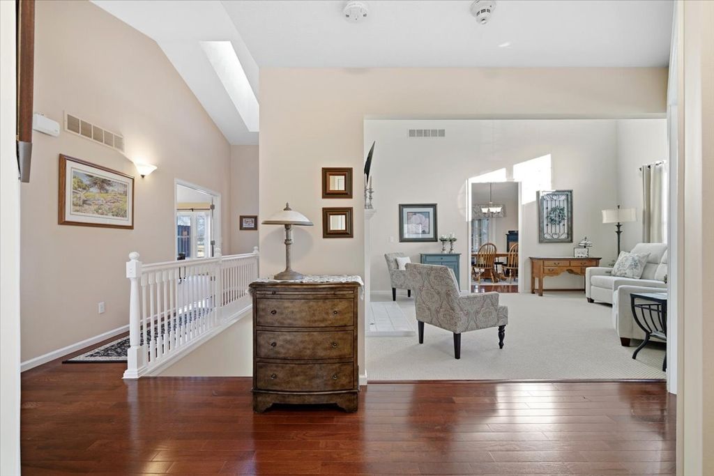Welcome to this beautifully maintained 3 bedroom, 3 bath home overlooking the 15th green in Ironwood. Gorgeous hardwood floors greet you in the foyer and lead seamlessly into the kitchen and dining area. Just off the entry, you'll find a spacious second bedroom and an inviting living room featuring vaulted ceilings, built-in bookcases, abundant natural light, and a cozy gas fireplace. The primary suite offers private access to a lovely deck and the perfect spot to unwind while taking in the beautifully landscaped backyard and golf course views. Start your mornings in the bright and airy sunroom, ideal for enjoying a peaceful sunrise and your first cup of coffee. The finished lower level expands your living space with a third bedroom, full bathroom, and an additional living area ideal for guests, entertaining, or a private retreat. Two bonus rooms offer flexible space for a home office, workout room, hobby area, or additional storage.