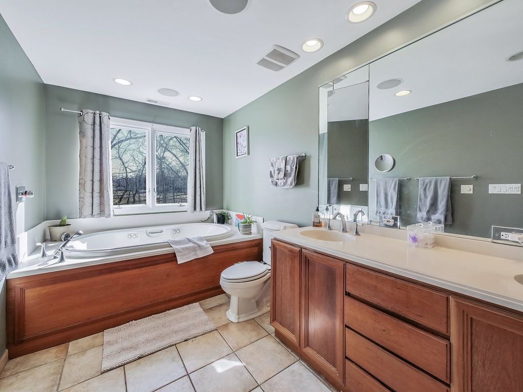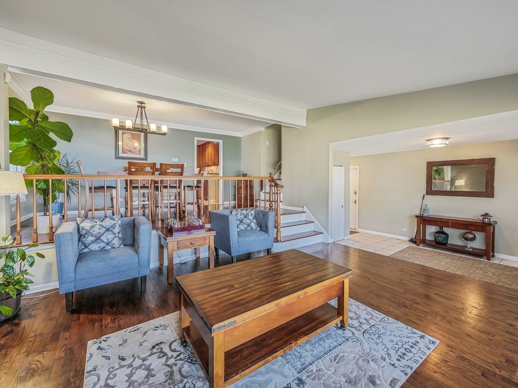 First showings by appointment only Saturday 3/14/26 10:00-4:00PM. Offers submitted no later than 11:00 AM Sunday. Updated and move-in ready in a prime location with top-rated schools! This beautifully maintained 4-bedroom, 3-bath home features a freshly painted interior and power-washed exterior. The spacious primary suite offers a walk-in closet with custom organizers, a large bath with a jetted tub, separate shower, and an adjacent private office filled with natural light. The lower-level 4th bedroom includes hardwood floors, a window, and double closets. Enjoy your choice of parking options with an attached 2-car garage plus a heated tandem garage for two additional vehicles. The kitchen boasts 42" cherry cabinetry, stainless steel appliances, Grohe faucets, and a marble backsplash, opening to a bright 3-season sunroom with cathedral ceilings (not heated). Additional features include hardwood and ceramic flooring throughout, vaulted ceilings, crown molding, recessed lighting, and whole-house surround sound wiring. Mechanical updates include two newer furnaces, two newer A/C units, two newer hot water heaters, updated electrical, and a concrete crawl space with a sump pump-completely dry. Outside, relax on the two-tiered deck overlooking a private backyard, perfect for entertaining or quiet evenings at home. Backyard fills in with privacy hedges and overlooks a creek. The city of Mt. Prospect Public Works dept. issued a letter stating the main structure is outside the Special Flood Hazard Area. Home is completely dry according to sellers.