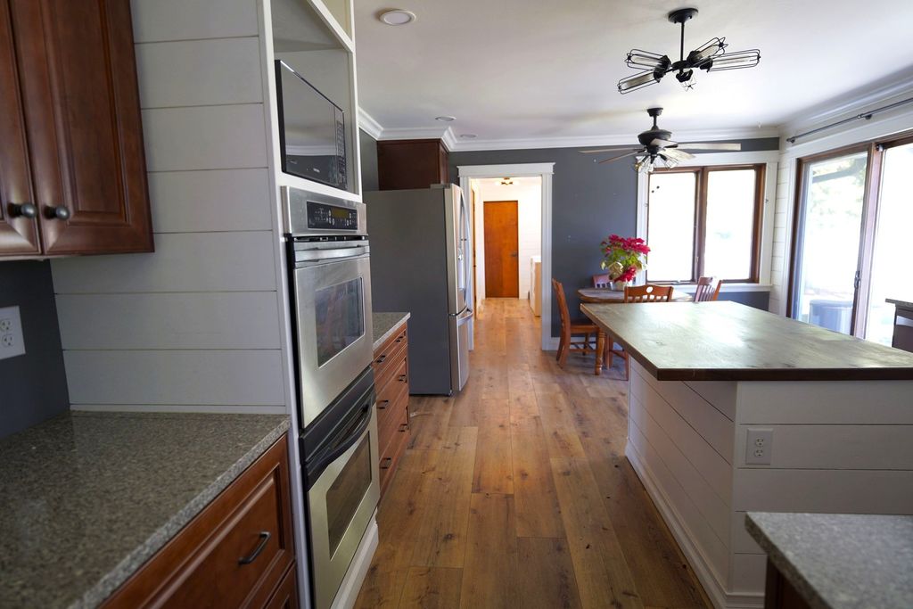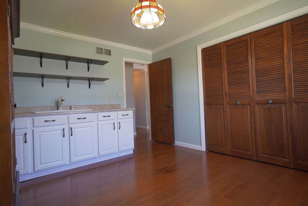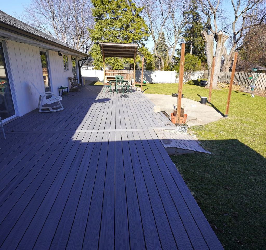 Welcome to this beautiful all-brick ranch home perfectly situated on a large corner lot! This home features 4 bedrooms and 2.5 baths with a spacious and inviting open floor plan. The main living areas include a formal dining room and a bright, spacious living room featuring a cozy wood-burning/gas fireplace. The fabulous updated eat-in kitchen is truly the heart of the home, showcasing 42" maple cabinets with LED under-cabinet lighting, abundant drawers, quartz countertops, shiplap walls, and high-end stainless steel appliances, including a Bosch induction cooktop and convection oven. A large island provides additional prep and gathering space, while sliding glass doors lead directly to the deck, making indoor-outdoor entertaining effortless. The cozy family room features a dramatic floor-to-ceiling brick fireplace (wood-burning and gas) along with built-in bookshelves-an ideal space to relax or gather with guests. A convenient laundry room with extensive built-in cabinetry adds everyday practicality. Much of the first floor features luxury vinyl plank flooring, combining durability with modern style. The primary suite includes a beautifully remodeled bath featuring an open, walk-in shower designed to offer both comfort and accessibility. The full, partially finished basement provides additional living space with a recreation room, bedroom or office, and extensive storage. Step outside to a backyard designed for relaxing and entertaining. The expansive 14' x 54' Trex deck overlooks mature trees and beautiful landscaping, and the yard also features a firepit, dedicated BBQ area, and plenty of space for gatherings, games, and outdoor dining. A fully fenced yard offers added peace of mind for both pets and children. Additional highlights include 220 electric service in the garage, two Franklin infrared fireplace inserts, dual furnaces and a roof replaced in 2019. A wonderful home offering space, warmth, accessibility, and exceptional outdoor living-perfect for everyday comfort and memorable gatherings. You won't want to miss this one!