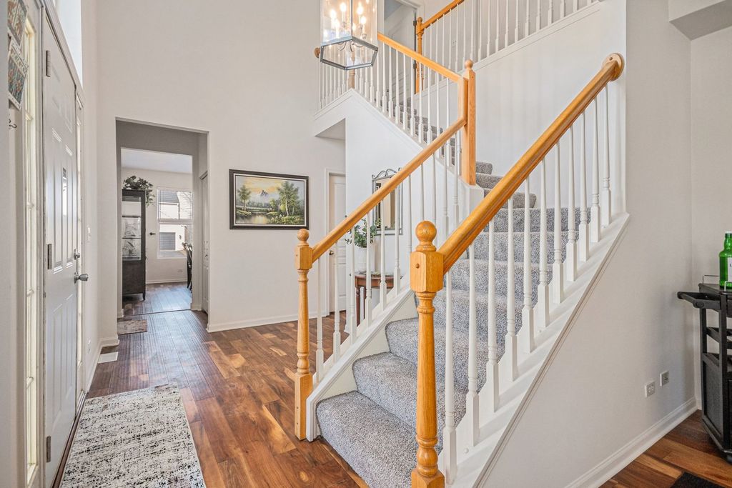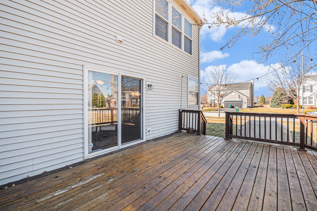 Move-in ready Kensington Club home on a premium corner lot across from the clubhouse and pool. East/West-facing with a 2-car side-load garage, this home offers a dramatic 2-story foyer, formal living and dining rooms, bay window, hardwood floors throughout the main level, 9-foot ceilings, and a family room with fireplace. Updated kitchen features granite countertops, 42" maple cabinets, backsplash, newer stainless-steel appliances, and butler pantry. Sliding door opens to a spacious deck, gazebo, and patio overlooking a huge open area ideal for entertaining or a future sunroom. Upstairs has 4 bedrooms, 2nd-floor laundry, brand-new carpet, and a vaulted primary suite with updated bath, marble flooring, dual sinks, separate tub and shower. Full basement with 9-foot ceilings and epoxy floors. Enjoy clubhouse, pool, fitness center, park, trails, and Plainfield District 202 schools.