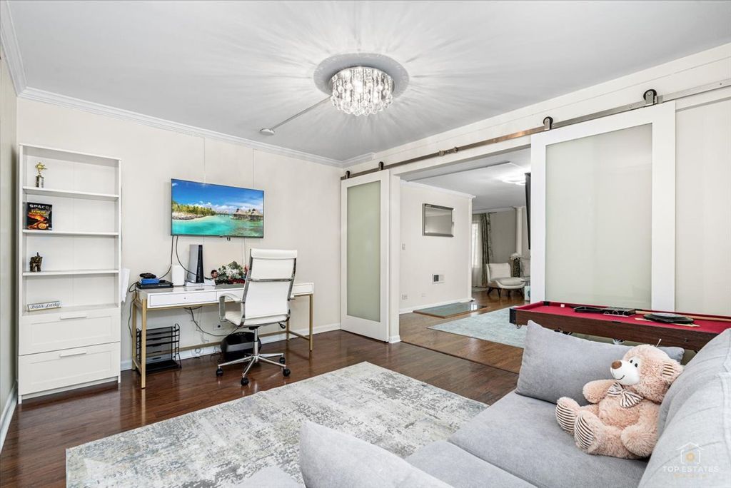 This is the one you've been waiting for! Beautifully updated and spacious 3-bedroom, 2-bath end unit (third bedroom currently used as a den/office) offering privacy, style, and impressive upgrades throughout. The remodeled kitchen features 42" soft-close cabinetry, granite countertops, stainless steel appliances, and newer flooring-perfect for everyday living and entertaining. The generous primary suite (19x11) includes a walk-in closet and private balcony access, while the spa-inspired primary bath boasts an oversized walk-in shower with handheld rain head, body jets, and built-in linen closet. The expansive living and dining area showcases newer engineered wood flooring, elegant crown molding, updated light fixtures. Two sliding doors open to a large balcony overlooking a serene, park-like setting, complete with an enclosed dry bar and mini fridge-ideal for entertaining. Additional updates include newer refrigerator, dishwasher, and disposal. Enjoy resort-style amenities including an exercise facility, outdoor pool, clubhouse, party room, tennis courts, extra storage, and underground garage parking. Prime location just minutes from vibrant downtown Arlington Heights dining, shopping, and entertainment, all within award-winning school districts-welcome home! **Home is being sold as-is**