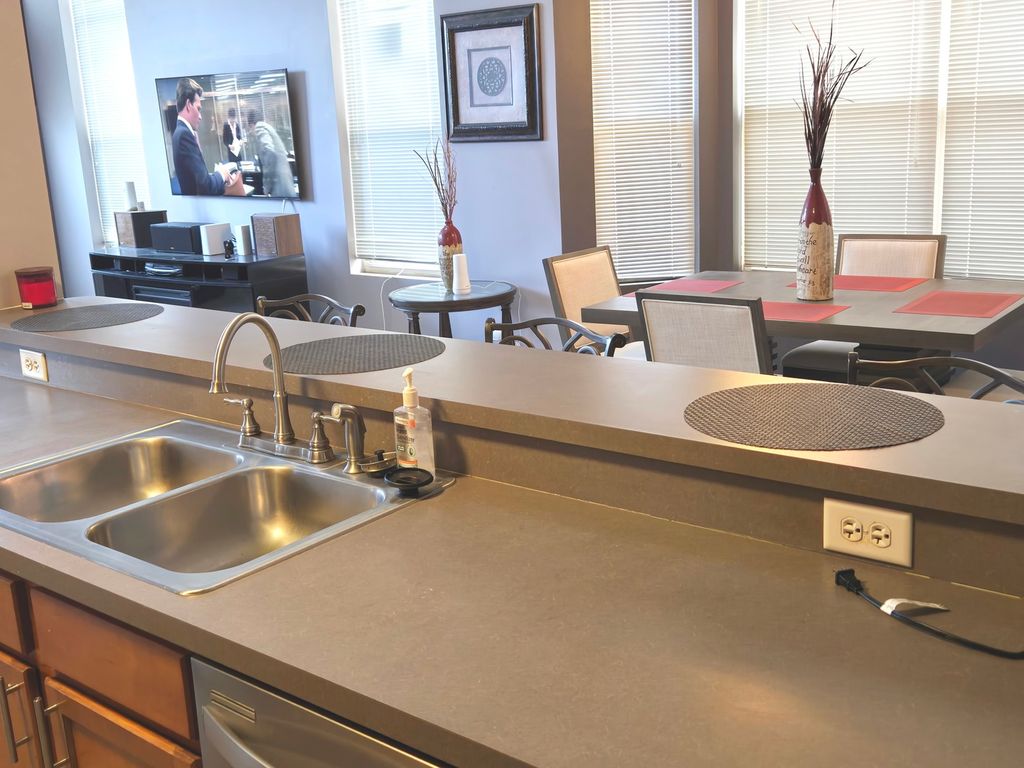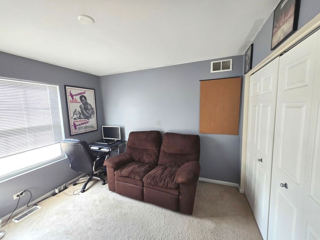 Welcome home to this beautiful 3-bedroom, 2.5-bath duplex designed for comfort, style, and effortless living. The open-concept main level showcases a soaring 2-story cathedral ceiling with dual skylights. These, along with the 2-story windows in the dining and living room areas brighten the entire main floor with natural light. The kitchen is perfect for everyday meals or entertaining, featuring a generous breakfast bar, 42" upper cabinets, newer stainless-steel appliances (2023), and a pantry. The first-floor master suite provides convenient main level living, while two additional bedrooms sit upstairs alongside an expansive loft that includes an impressive home theater setup. Additional highlights include a first-floor laundry room off of the kiichen, a newer Trane furnace (2022), a private deck with a lighted gazebo and furniture staying, and a full large garage door screen for added versatility.