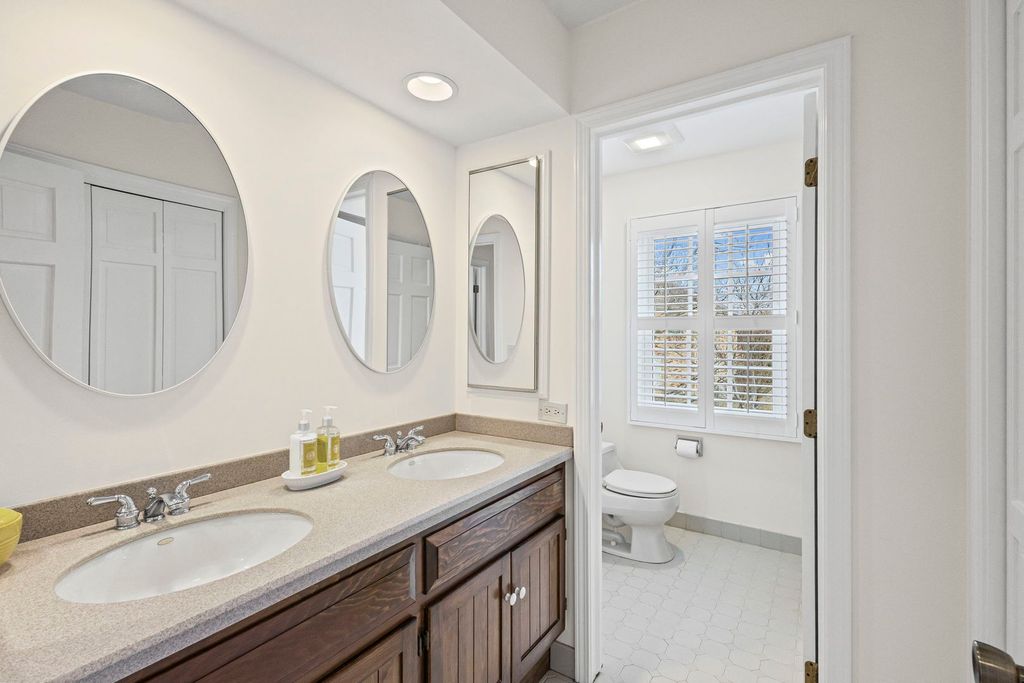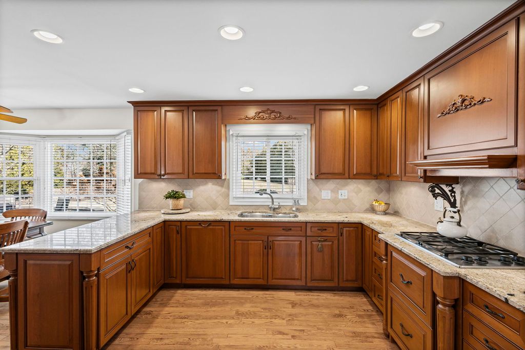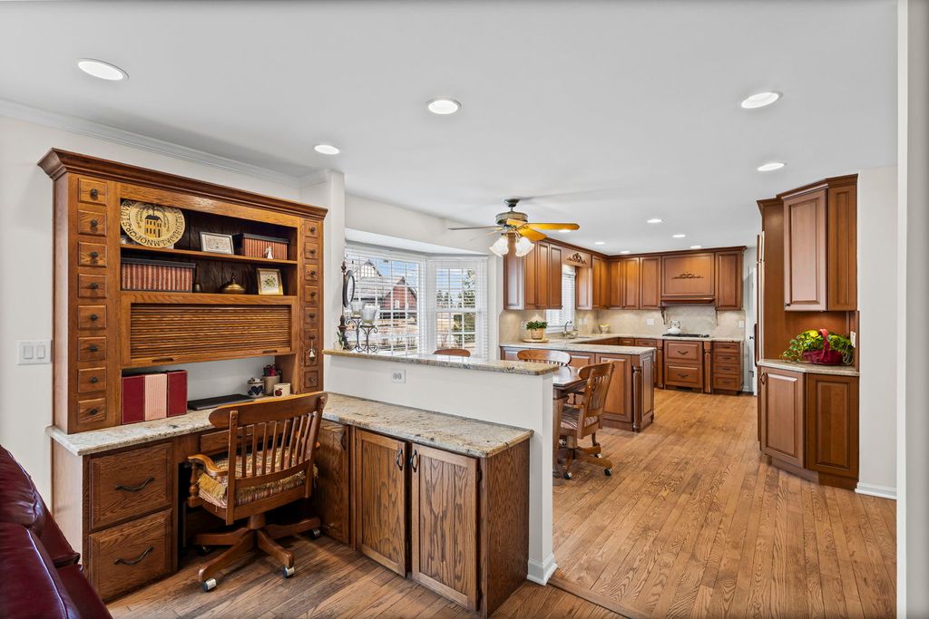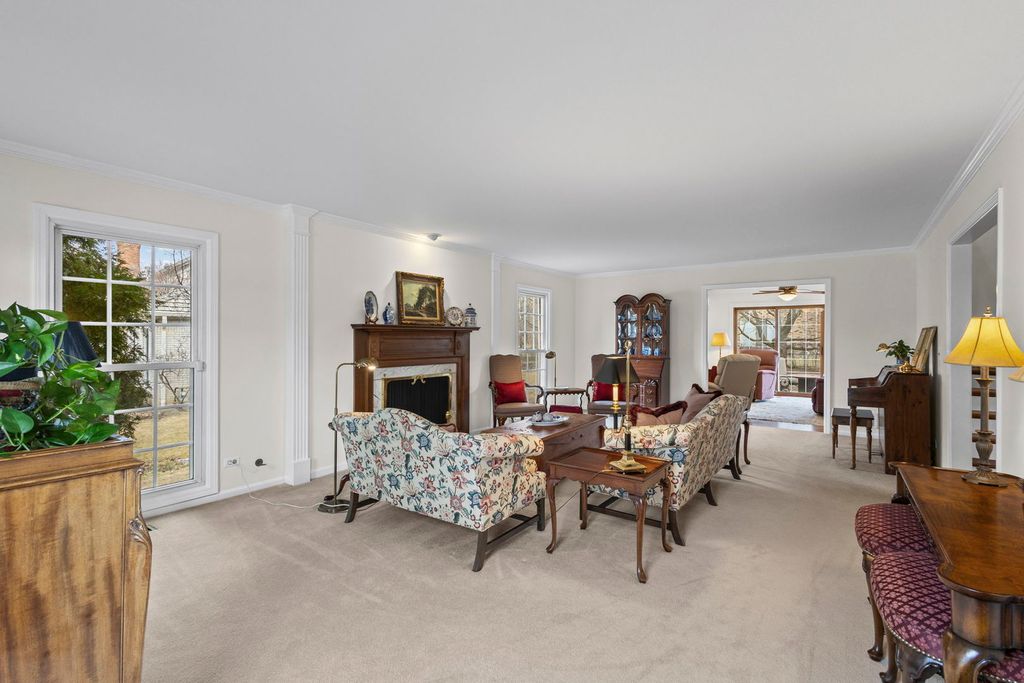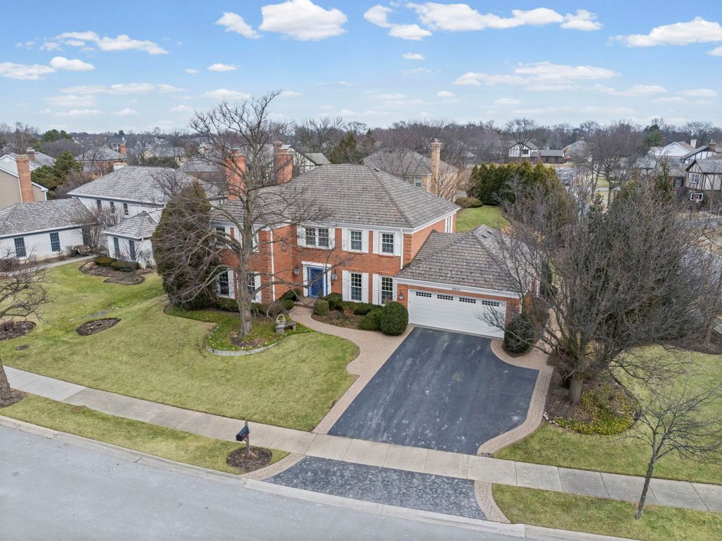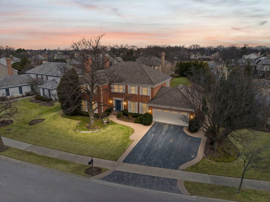 Indian Ridge gem situated on over 1/3 of an acre beautifully landscaped corner lot, this meticulously maintained, original-owner all-brick Colonial offers timeless elegance, generous living space, and extensive updates throughout. A welcoming center entry is flanked by an expansive living room and formal dining room. The oversized living room features large windows and a gas log fireplace, opening seamlessly to the family room - ideal for entertaining. The custom Apex Kitchen and Bath remodeled kitchen (2009) is a chef's dream, showcasing rich cherry cabinetry, a butler's pantry connecting to the dining room, and a bright eating area with bay window. High-end appliances include a Dacor gas cooktop, Sub-Zero side-by-side refrigerator/freezer, Miele dishwasher, and a built-in three-piece KitchenAid electric/convection oven, high-speed microwave, and warming drawer. The kitchen opens to the inviting family room featuring a second gas log fireplace (remote controlled), built-in bookshelves, built-in desk, wet bar, and triple sliding doors leading to dual brick patios and the professionally designed yard. Upstairs you'll find five spacious bedrooms, including a primary suite with updated bath featuring a double-sink vanity and walk-in steam shower. The hall bath offers a double vanity with a separate tub/toilet room for added convenience. The finished basement provides exceptional additional living space with two recreation areas, a full bath, private office, and large storage/utility room. Extensive improvements include: * 2021 synthetic cedar roof with 50-year transferable warranty * All windows and storm doors 2001 and Renewal by Andersen front door (2022) * Redesigned landscaping, patios, and driveway * New brick paver walkway and driveway border * Sealed garage floor system * New garage door * In-ground sprinkler system * Whole house painted (2026) Additional highlights include an extra-wide spiral staircase, powder room, spacious first floor laundry room, garage attic stairs, attached two-car garage with extra storage cutout and newer exterior door. Located across from Indian Ridge Park with playground, tennis and basketball courts, this distinctive community features three lakes, professionally landscaped common areas, one entrance, and extra-wide streets with sidewalks. Award-winning School Districts 31 and 225. Convenient access to I-294, The Glen, Metra, and just 20 minutes to O'Hare. A rare opportunity to own a beautifully updated, move-in ready home in one of the area's most sought-after neighborhoods. Showings Start Friday March 6.