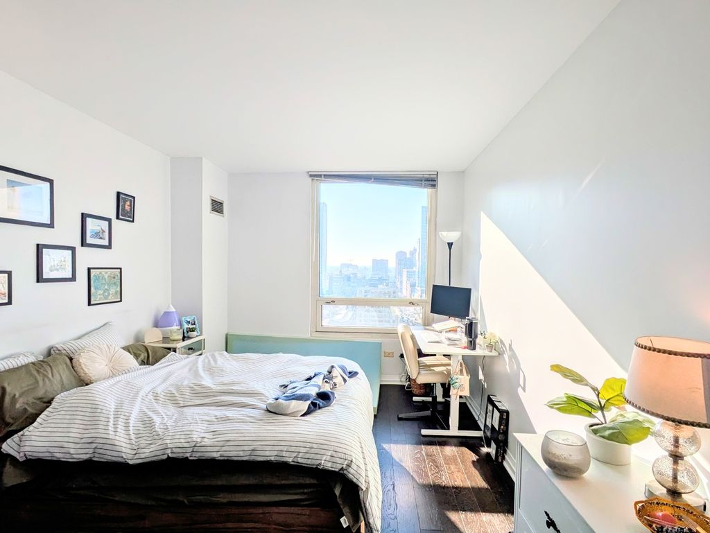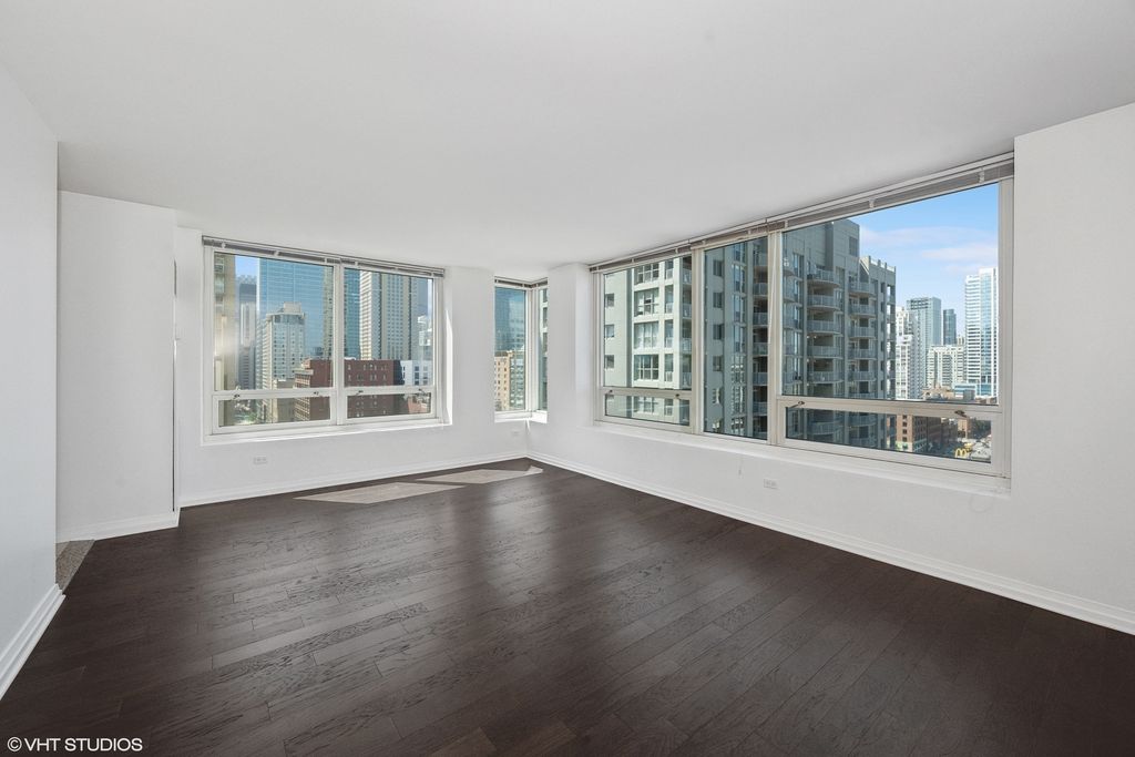 Enjoy one of the building's popular corner layouts, with split bedrooms that offer privacy for guests or roommates. Espresso floors run throughout the home, and the living area has plenty of space for both relaxing and dining, surrounded by large windows and high ceilings that bring in great natural light. The kitchen features stainless-steel appliances, granite countertops, 42-inch cabinets, and a convenient nook with extra pantry storage. The primary bedroom is spacious, with professionally organized closets and an ensuite bath that includes a six-foot soaking tub and updated lighting. The second bedroom comfortably fits a king-size bed and can easily accommodate a desk or work-from-home setup. Located at 33 W. Ontario, the building offers 24-hour door staff, an outdoor pool and sundeck with grilling area, fitness center, resident lounge, conference room, package receiving, and a storage locker. The location puts you just steps from the Magnificent Mile, Whole Foods, Trader Joe's, and Jewel, with easy access to the Loop, the lakefront, running and bike paths, public transportation, and expressways.