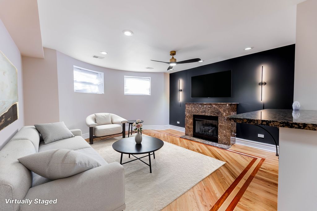 Stunning Fully Renovated 2 Bed, 2 Bath condo in the heart of Bronzeville. This spacious condo features an open-concept floor plan with striking accent wall and fireplace, creating an inviting atmosphere ideal for both entertaining and everyday living. Chef's kitchen includes rich cabinetry, granite countertops, stainless steel appliances, and elegant gold hardware. Two spa inspired bathrooms showcasing marble tile, designer fixtures , and premium finishes. This condo also features gleaming hardwood floors, recessed lighting, primary suite, contemporary ceiling fans, in unit Washer and Dryer, newly painted back patio, and a dedicated parking space. Ideally located just minutes from downtown, the lakefront, Hyde Park, and major Chicago attractions. Don't miss the opportunity to own this exceptional condo in one of Bronzeville's most desirable locations. Schedule your private showing today!!!