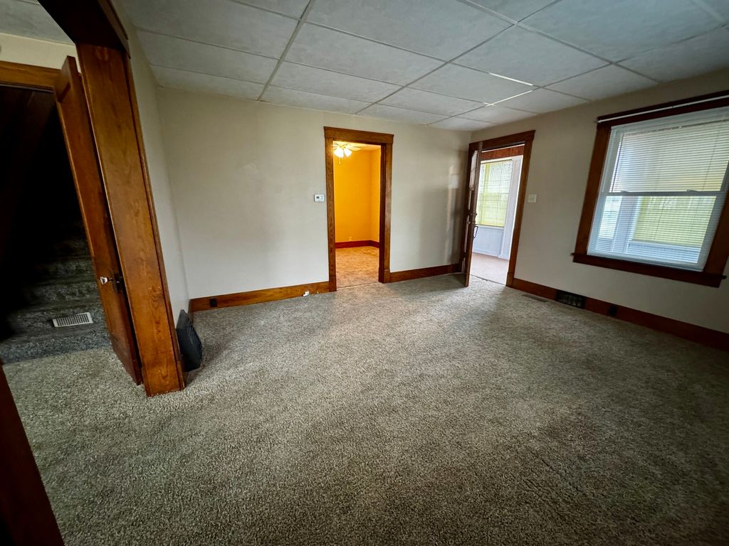 Charming 1926 bungalow blending vintage character with comfortable, functional living. This delightful home offers 3 bedrooms and 2 full baths, with the primary bedroom conveniently located on the main level. An enclosed front porch welcomes you into a bright living space; the dining room features a lovely bay window that fills the home with natural light. Hardwood floors lie beneath the carpets, ready to be revealed and restored. The kitchen showcases warm oak cabinetry and practical layout, with main-level laundry tucked into the enclosed back porch for easy access. Upstairs a versatile loft leads to two large bedrooms and a full bathroom - ideal for family, guests, or a home office. The property includes a full dry basement for storage or future finished space, plus a one-car detached garage. Recent replacement windows enhance comfort and efficiency - lowering energy costs, reducing outside noise, improving UV protection for floors and furnishings, and boosting curb appeal and resale value. Well-suited for buyers who appreciate period detail with modern potential, this home offers solid bones and many opportunities to personalize. Schedule a showing today!