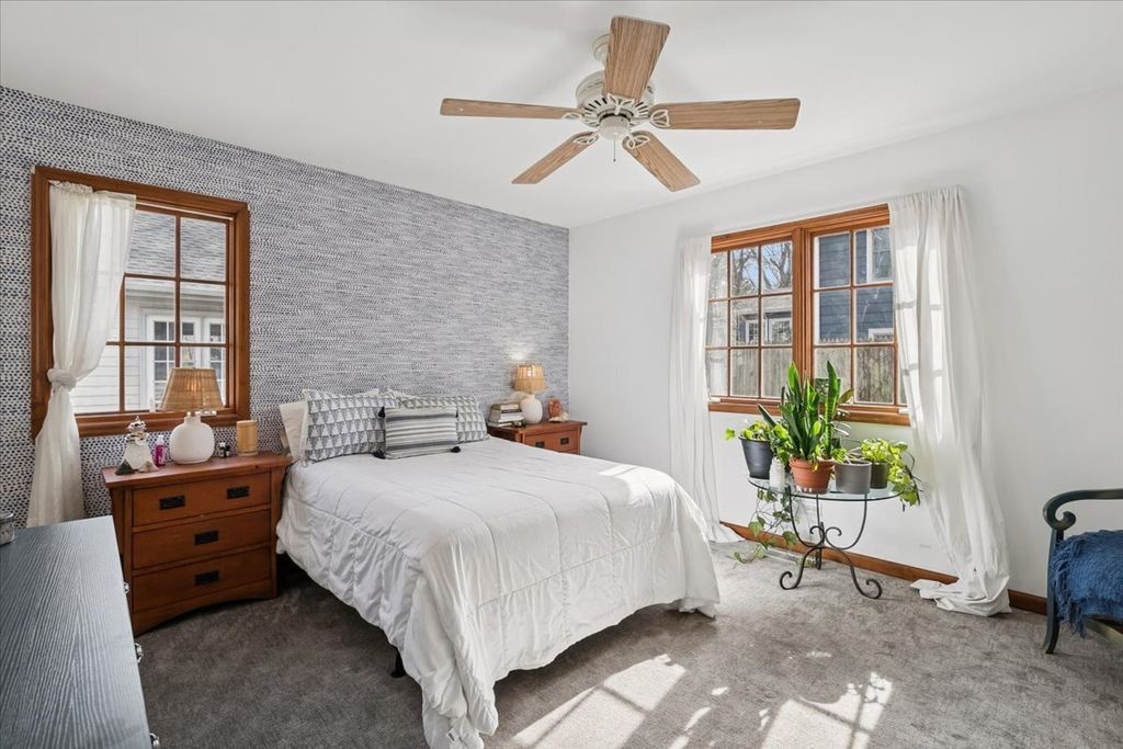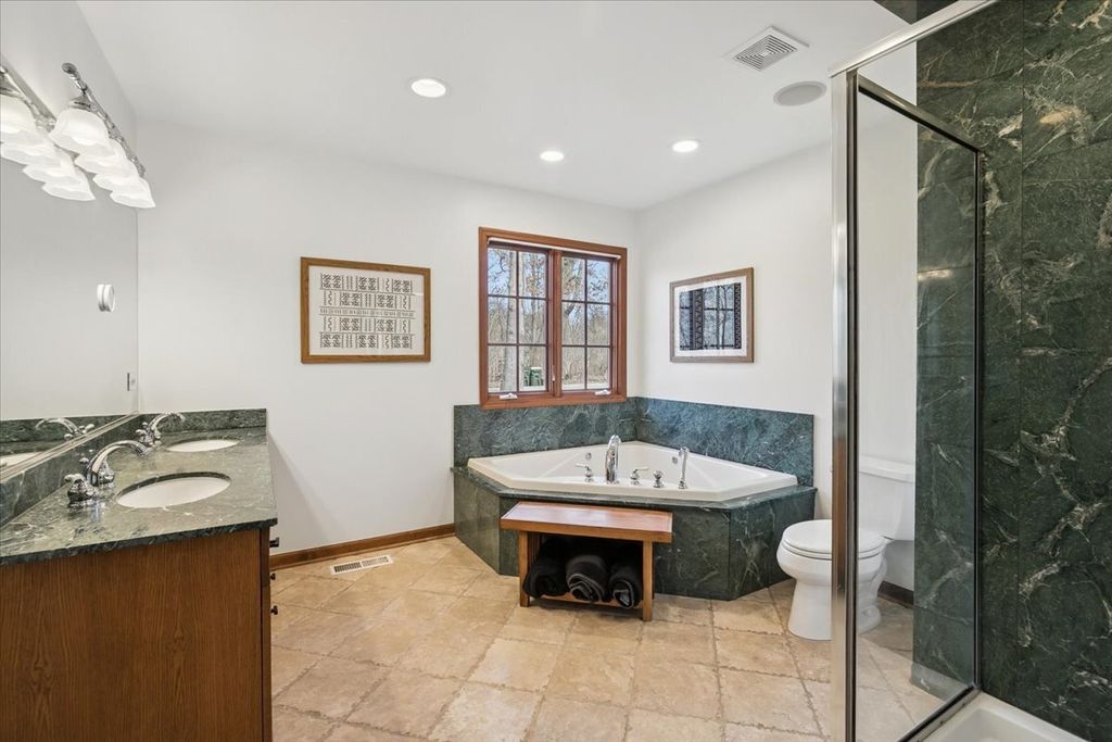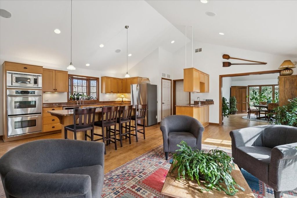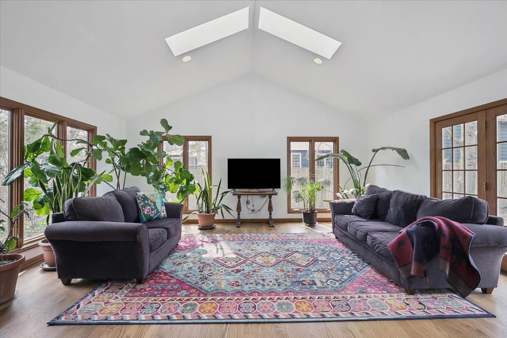 Welcome to your next happy place! This wonderful ranch home offers the perfect blend of comfort and convenience, with bright, open living spaces that feel warm and welcoming from the moment you walk in. The sun-filled great room is truly a showstopper and the perfect place to relax, gather, and easily envision everyday living and entertaining. The open kitchen flows seamlessly into the family room with a cozy fireplace, creating a warm and inviting heart of the home. Step outside to three blue-stone patios,one off the primary suite offering plenty of space for outdoor dining, lounging, and enjoying the peaceful surroundings. Recent improvements include a new furnace, roof, gutters, skylights, refinished hardwood floors, new refrigerator. Home office plus full unfinished basement plumbed for a full bath All of this in a quiet location in a sought after LB neighborhood close to town, schools, and parks. Whether you're starting out, settling down, or looking for a fresh start, this one is ready to welcome you.
