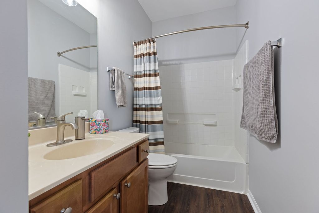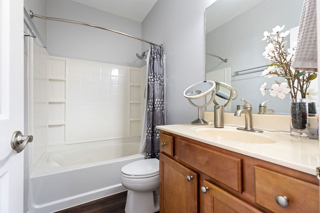 YES, this is the one!!! 3 Bed 3 full bath updated end unit with attached 2 1/2 car garage located exactly where you want to be! Ample natural light highlights the freshly painted flowing floorplan. Your updated kitchen features granite countertops, deep granite sink, Bluetooth oven (w/ all the accessories) & updated stainless steel appliances. The kitchen flows into your dining room ( also has private balcony) and living room that overlooks courtyard and is perfect for family time or entertaining. Two bedrooms on main floor including one that has private ensuite with full bathroom and huge walk in closet. Main level laundry & additional full bathroom, ample closets with custom organizers. Spacious lower level bedroom also has full bathroom. New ultra quiet garage door opener with keypad & app already installed. Near 59 & Black Road with all the stores and restaurants you love. There is absolutely nothing to do but move in- call or text for more information and to schedule a private showing today !