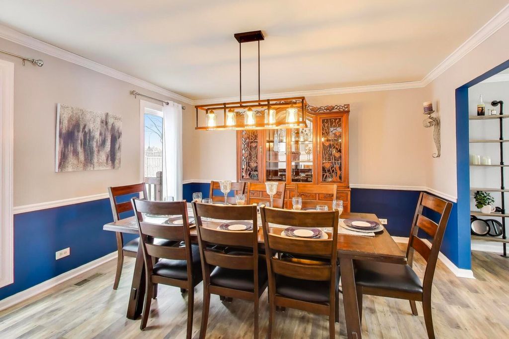 Spacious 5-bedroom, 4-bathroom colonial nestled on a cul-de-sac in the desirable Heatherstone community. From the convenient first floor bedroom & full bath, to the 3 car garage this home offers features not often found at this price point. The main floor offers a rare gem-a private bedroom with an adjacent full bath, perfect for guests or multi-generational living. The spacious eat-in kitchen, outfitted with new stainless steel appliances (2024) and hardwood floor, seamlessly flows into the open-concept family room, where a cozy fireplace invites you to unwind. Sliding doors lead to the deck, offering a lovely spot for morning coffee or evening gatherings. The living and dining rooms feature elegant crown molding and updated vinyl flooring, adding a touch of sophistication to every meal and moment. A convenient first-floor laundry/mudroom rounds out this level. Upstairs, you'll find four generously sized bedrooms, including a luxurious primary suite with a huge walk-in closet, a dressing area, and an en-suite bath. New vinyl flooring continues throughout the second floor, adding modern flair and easy maintenance. The finished basement is a haven for versatility, boasting a sprawling recreation room, a full bath, and an additional bedroom that's perfect for a home office or guest suite. Storage won't be an issue with the large utility room and expansive crawl space. Outside, the newly fenced backyard offers privacy and peace of mind for pets and play, while recent updates-including a new roof (2023), furnace and AC (2024), new kitchen appliances, new(leased) solar panels, and a radon system-ensure worry-free living. A brand-new front door awaits its new owner to add the finishing touch. Situated just minutes from schools, parks, and easy access to Route 53, this home is as practical as it is spacious.