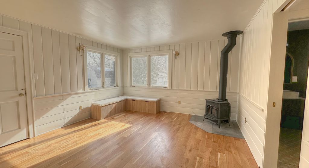 Welcome to 370 S Oriole Trail, a truly one-of-a-kind home nestled in the heart of Crystal Lake, Illinois. Originally built in 1912, this beautifully preserved and thoughtfully updated 4-bedroom, 2.5-bath residence blends timeless character with modern sophistication - far from your cookie-cutter home. Step inside to discover a fully remodeled, professionally designed kitchen featuring striking brick flooring, high-end appliances, granite countertops and backsplash, and exceptional attention to detail. The space flows seamlessly into the adjoining sitting area with rich American cherry hardwood floors, a cozy wood-burning stove, and vintage built-ins that add warmth and charm. All wood floors throughout the home have been refinished, enhancing the classic appeal. The first-floor primary suite offers comfort and privacy with its own full bath and direct access to the back deck - the perfect retreat. A massive family room showcases exposed wood beams and a fireplace, while the oversized dining room is ready to host unforgettable gatherings - complete with a designer wallpaper ceiling that's sure to be the talk of the town. Upstairs, you'll find three generously sized bedrooms and a full bath. The main level also includes a convenient half bath and laundry area with washer and dryer included. Set on a picturesque 1/2-acre lot with a beautiful tree-lined backdrop, the outdoor space features a brand-new concrete and paver patio and a matching shed - ideal for entertaining or relaxing. A partial unfinished basement offers abundant storage and workshop potential. The attached two-car garage includes attic storage above for even more space. Perfectly located near downtown Crystal Lake, the Metra, schools, and the library, this home offers vintage charm, thoughtful updates, and a prime location - a rare opportunity to own a truly distinctive property.