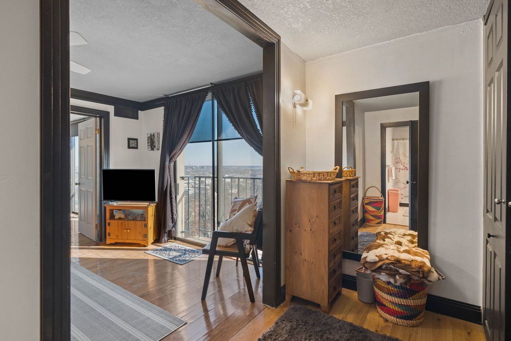Move in ready 1 bed, 1 bath condo that has been beautifully updated. A unique kitchen with breakfast bar eating area that has solid surface countertops and the appliances stay! There is floor to ceiling windows and sliding doors that allow for lots of natural light and gorgeous sunsets. *photos with views is from the seller* It is an open floor plan with wood floors and crown molding. The HOA has elevators, pool, common library, pool table, grills, deck, sauna, fitness room, secured building, HOA covers water, gas, furnace and central air. The laundry facility is only feet from your door and there is one on each floor. Your costs would be mid-american for electricity and cable/internet. 2 cats allowed, no dogs. Close by is the Rust Belt, The Bend, Short Hills country club and many dining options and be close to East Moline festivities in Runners Park! Heated garage space is available for an additional 60/mo. Don't dely in setting up your showing, this is a great space and cheaper than rent!!