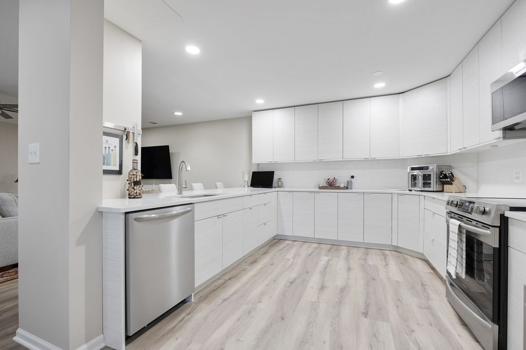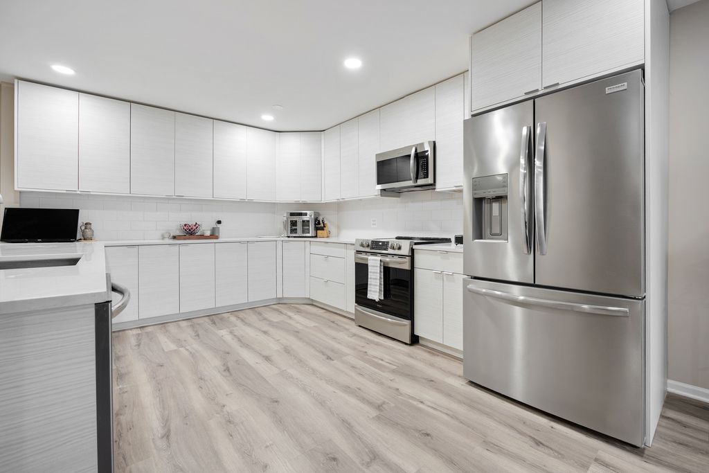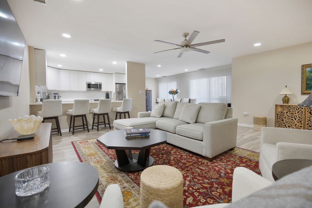 Beautifully modern tranquil and private first-floor 3 bedroom/2 bath end unit offers scenic wooded views from every window. The open concept floor plan kitchen is completely updated with quartz countertops, stainless steel appliances and tons of cabinetry with under cabinet lighting. This home features newer electrical, plumbing and flooring along with new HVAC in 2025 and custom Hunter Douglas remote control blinds throughout. There are canned LED lights throughout the unit. The spacious primary bedroom includes a luxurious bath with a huge walk-in shower and abundance of custom closets. Large laundry room off of the primary bedroom with built in cabinets that could make a nice coffee bar. 2 Additional bedrooms and updated 2nd bathroom with walk-in jetted tub. Enjoy the oversized private screened porch with breathtaking views. The unit comes with two dedicated heated parking spots and additional storage. The secure building features an inviting lobby, and the community offers an array of amenities for an active lifestyle, such as pickleball, tennis, scenic walking paths, pool, and a clubhouse. There is a gated 24-hour guard house, access to Hinsdale schools, and proximity to expressways, the Metra, and Oak Brook Mall shops and restaurants. Don't miss out, it truly is a must see!