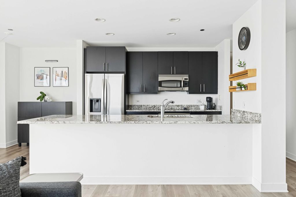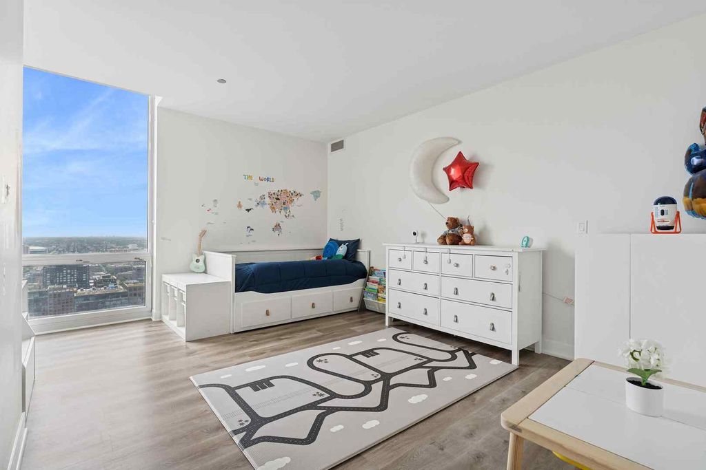 ONE OF THE LARGEST UNITS in the building with PANORAMIC VIEWS FROM EVERY ROOM in the West Loop! This stunning, sun-drenched 2 BED / 2 BATH residence features hardwood floors throughout, an expansive open-concept kitchen, living, and dining layout framed by FLOOR-TO-CEILING WINDOWS with Southwest BREATHTAKING SKYLINE VIEWS and A PRIVATE OUTDOOR SPACE. The upgraded chef's kitchen boasts an impressive EXPANSIVE ISLAND, stainless steel appliances, and abundant storage. Bonus area for an office/pantry/built-in bar (as virtually staged in the photos). The ENORMOUS primary suite includes an OVERSIZED professionally organized walk-in closet, while the luxurious primary bathroom offers dual vanity, oversized walk-in shower, separate soaking tub, beautiful finishes, and exceptional storage. An additional incredibly large sized bedroom, full modern bathroom, and GRAND LAUNDRY ROOM with extra storage complete this extraordinary layout. Full-amenity building includes 24-hour door staff, onsite manager, rooftop terrace, state-of-the-art fitness center, party room, dog run, and convenient UNDERGROUND access to Whole Foods! PRIME West Loop location just steps from the Loop, Greektown, Mary Bartelme Park, Restaurant Row, vibrant Fulton Market dining and nightlife, boutiques, coffee shops, fitness studios, Whole Foods, Mariano's, the EL, and 90/94 access. SKINNER SCHOOL DISTRICT! GARAGE PARKING SPACE AVAILABLE FOR $30K.
