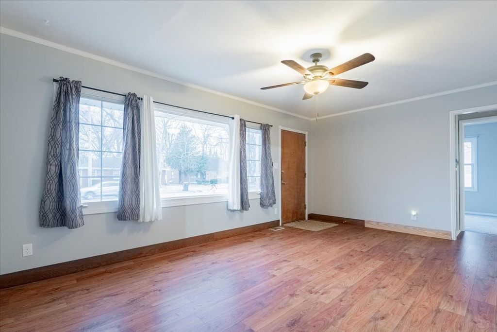 Welcome to this move in ready 3 bed, 1 bath ranch style home with a 1 car attached garage and fenced in back yard. Close to ISU!!! You'll notice from the second you walk in the front door this home has a very unique floor plan. In the front of the home, you have a large living room with huge windows allowing tons of natural light. Also, in the front of the home, you have 2 of the 3 bedrooms and a full bath. The kitchen has updated kitchen cabinets, SS Appliances, and a cute little breakfast bar. Directly off the kitchen is a laundry room with tons of space. Towards the back of the home, you'll enjoy a massive second living room with a wood burning fireplace. Right off the living room is the 3rd bedroom. Walkout the sliding backdoor onto a nice sized patio overlooking the huge, fenced backyard with firepit. Updates from 2023-2026 include.... Fresh paint throughout, flooring and carpet, SS Appliances, refinished and painted kitchen cabinets, light fixtures, ceiling fans and outside shutters.