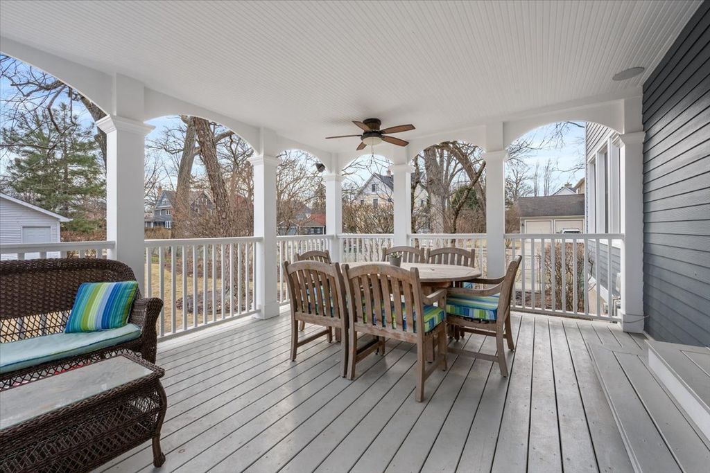 Welcome to 835 Forest Avenue - East Wilmette Living at Its Best. Perfectly situated in the heart of East Wilmette, this move-in ready 5-bedroom, 2.1-bath home offers the ideal blend of charm, space, and walkable convenience. Just steps to town, Metra trains, top-rated schools, the beach, Plaza del Lago, and more - the location truly can't be beat. The sun-drenched first floor features a gracious "figure-eight" floor plan designed for both everyday living and effortless entertaining. A welcoming entry foyer leads to a formal living room and a formal dining room complete with a wet bar. The updated eat-in kitchen flows seamlessly into a large, south-facing family room filled with natural light. A powder room and spacious covered deck complete this level, creating the perfect indoor-outdoor connection. Upstairs, the second floor offers a spacious primary suite, three generously sized bedrooms with ample closet space, a hall bath, and the convenience of second-floor laundry. The third floor offers a fifth bedroom with a large common space that is ready to be customized to your needs. The finished lower level includes a recreation room plus three substantial storage areas, providing excellent flexibility and organization. Step outside to enjoy the covered back deck overlooking your deep, 85-foot private lot, along with a newer two-car garage. A rare opportunity to enjoy space, light, and an unbeatable East Wilmette location - all in one beautiful home