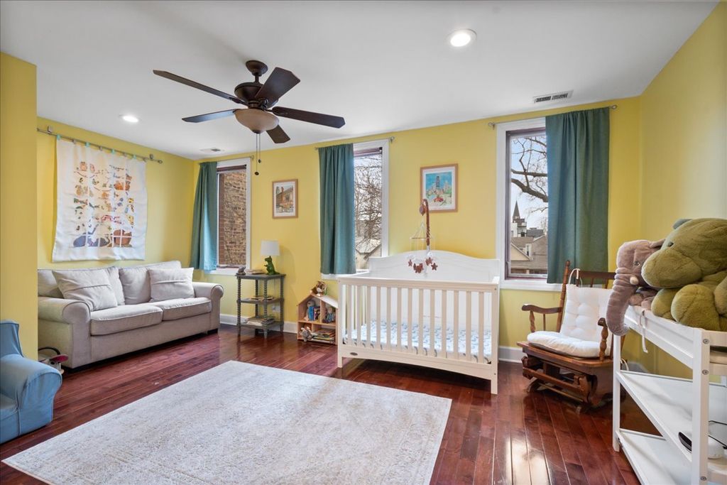 The best urban living is here with this 4 bedroom 4 bath home with massive curb appeal. Each floor has at least one bedroom and one full bathroom. As you enter the home you are greeted by the open living room/dining room. The main floor features tall ceilings with recessed lighting, hardwood floors throughout, a custom kitchen with a large island, granite countertops, stainless steel appliances, and more. Off the kitchen area there is an additional dining space, and french doors leading out to the deck & backyard. Gleaming wood staircase leads to the second floor boasting two bedroom suites with custom bathrooms and large closets. Basement features 7' celings, a large family room, 4th bedroom, large laundry room, and lots of storage. The home features "Pella" wood windows, gorgeous hardwood floors, dual-zone HVAC, ejector pump, and sits on an extra deep Chicago lot allowing you to enjoy a good sized backyard in addition to the large 2 car garage. Location is amazing! Walk to the CTA Blue Line, Palmer Square, restaurants and shopping. Enjoy everything the heart of Logan Square has to offer!