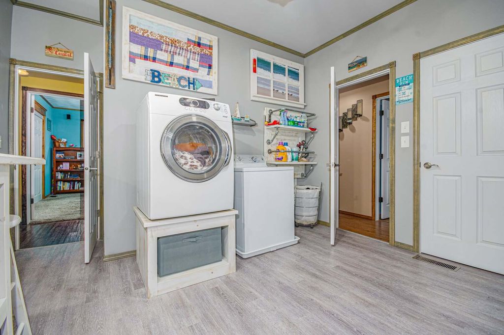 Charming and updated! This beautiful home is likely to surprise you with the space and character. Main level offers large living/dining area, kitchen with appliances included, mudroom, large bedroom with 2 closets that used to be 2 bedrooms, 2 full bathrooms, a 2nd bedroom and the cutest laundry (previous bedroom) that could double as an office or playroom. Large window displays light from Main St and a fun covered porch for relaxing. The upstairs has been transformed into an apartment feel area featuring a bedroom, family room area, 1/2 bath and a hobby/office area. Unfinished basement is perfect for a workshop or storage. Garage, partially fenced yard, camper hookup and grassy area for outdoor space. Check out the pictures and floor plan to see if this space is what you have been searching for.