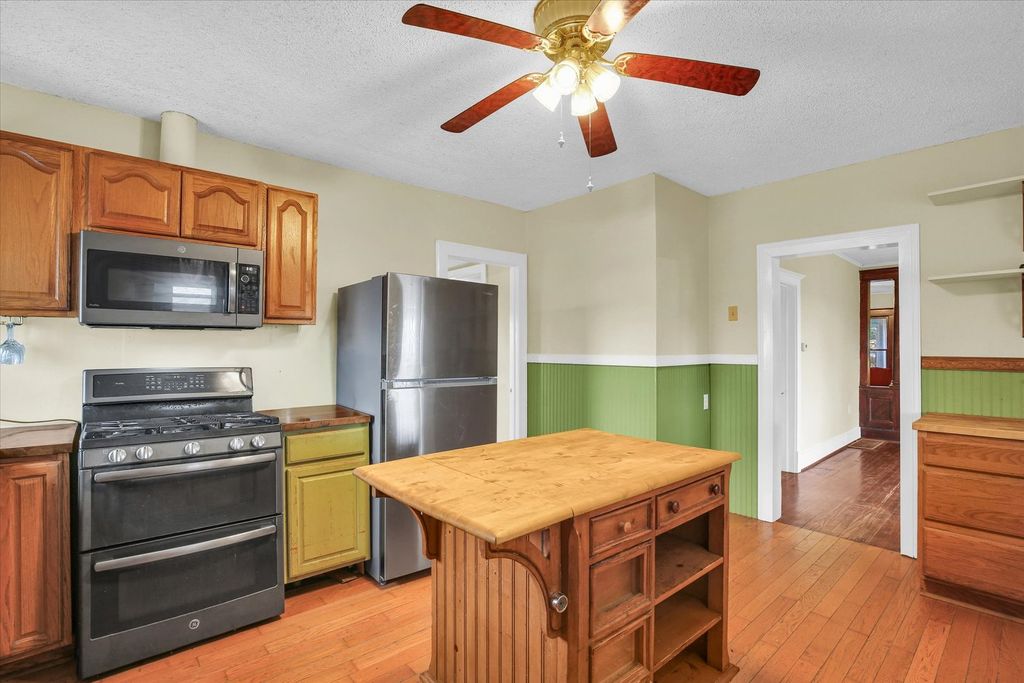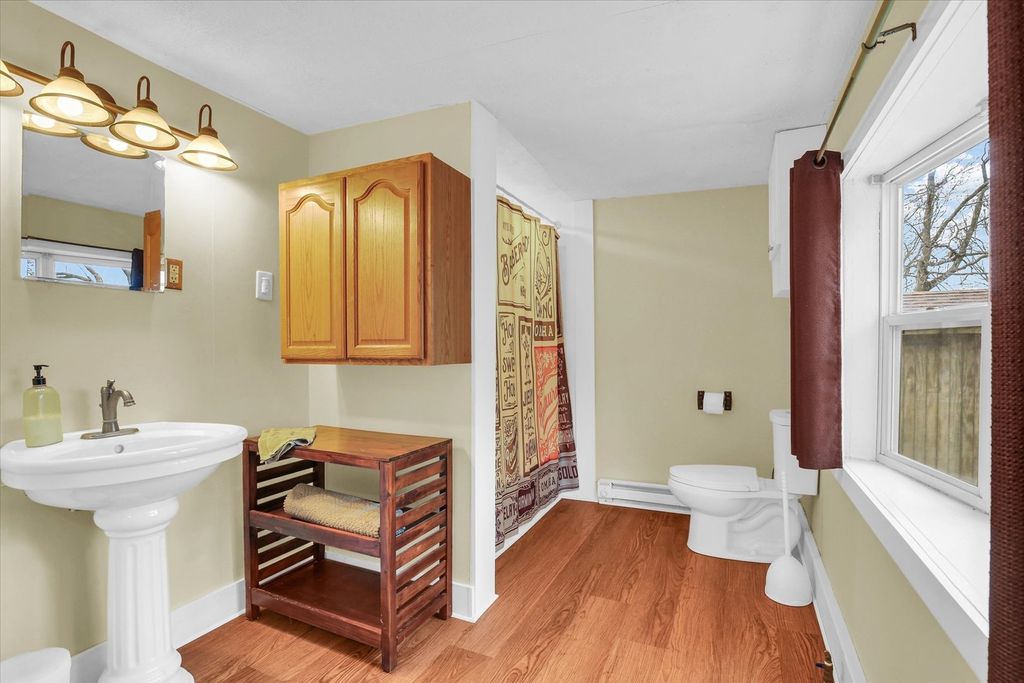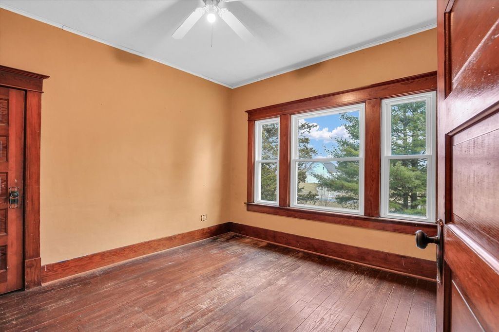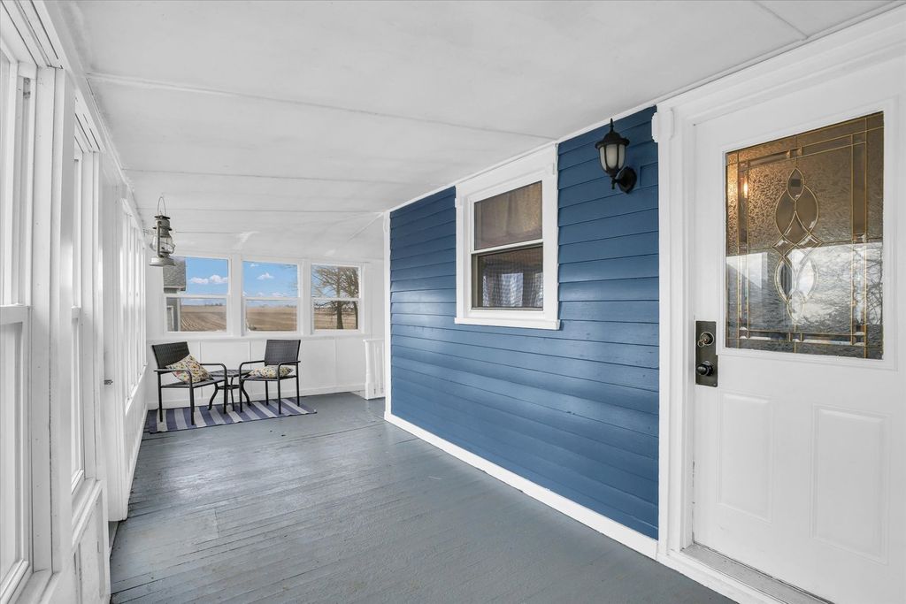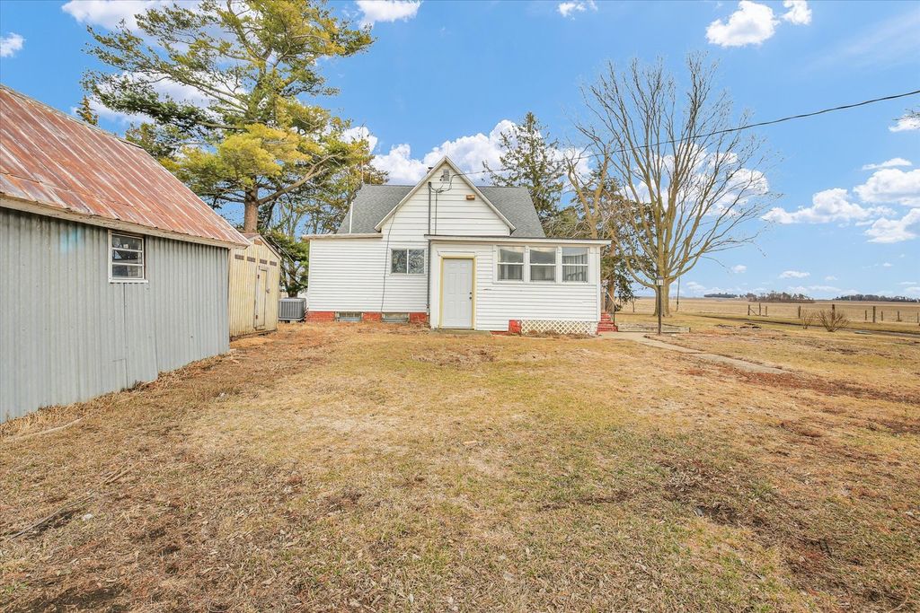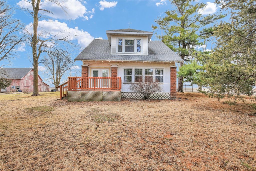 Charming 2-acre country homestead offering space, simplicity, and flexibility. This 4-bedroom, 1.5-bath home features a main-floor primary bedroom, spacious living and dining rooms, original wood floors, and two enclosed porches for year-round use. The property includes multiple outbuildings-traditional red barn, chicken house, and garage/workshop-along with garden space and pasture. A Generac whole-house generator with a dedicated 250-gallon propane tank provides added peace of mind. An additional 500-gallon owned propane tank is also on the property, along with one rented tank. The existing wood-burning stove will be removed; seller will cap the flue or install a different well-constructed stove per buyer preference. Outbuildings are being sold AS-IS.