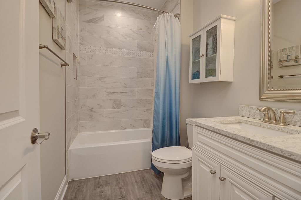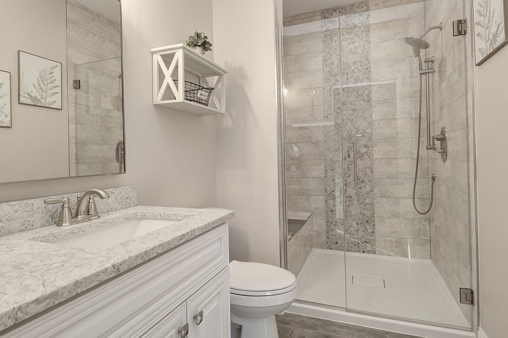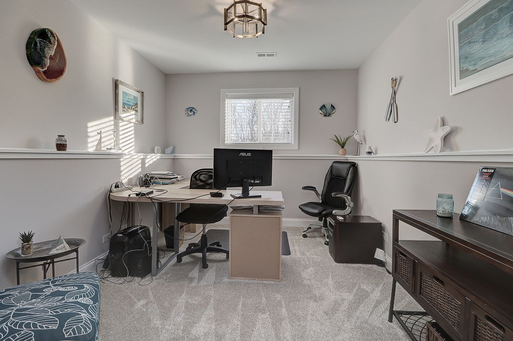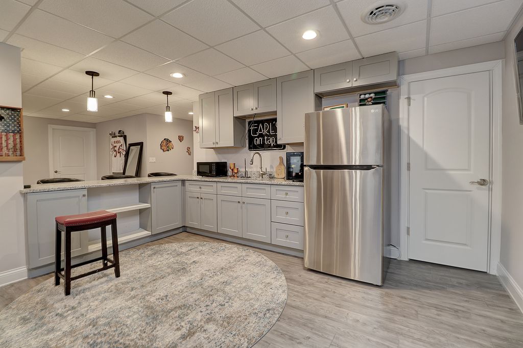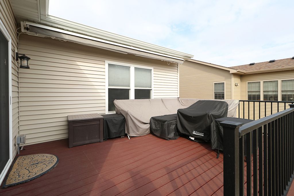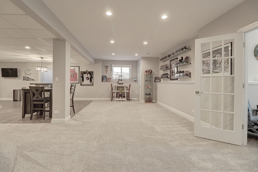This stunning 3-bedroom, 3 bath custom built smart home duplex offers luxury finishes, thoughtful design and incredible versatility, perfect for entertaining or possible related living. Step inside to an open floor plan featuring a vaulted ceiling and a gas log fireplace with custom tile surround and blower creating a warm and inviting great room. The gourmet kitchen is a true showstopper with custom cabinetry, subway tile backsplash, a large island, granite countertops, composite sink with touchless faucet and Wi-Fi enabled Samsung appliances. The cozy sunroom with decorative shiplap provides beautiful seasonal views of the retention pond and wooded backdrop- a peaceful retreat year- round, The spacious primary suite boasts a customized walk-in closet and a private bath with a stunning decorative tiled shower. A conveniently located mudroom sits just off the garage and kitchen for everyday ease. The full lookout basement has 9-foot ceilings, a third full bathroom as well as a second kitchen and bar perfect for entertaining. There is also an office with glass French doors and a hobby room with an air vent. This home has great potential for related living. From the moment you enter the home you can tell there has been attention to detail with crown molding, chair rails, wainscoting and six panel doors. Enjoy the view of the pond and woods from the oversized custom deck with remote controlled led lighting. For those sunny summer days, you can find shade with the retractable remote-controlled awning. The fenced yard has been equipped with a 6-zone underground sprinkler system with Wi-Fi control. Additional upgrades to this home include a whole house generator, custom lighting, Simply Safe security system, and ample garage storage, including elevated storage pods, an outdoor gas grill hookup, and concrete finishing below the deck, as well as a storage shed. Garage door opener includes back up battery and camera. Custom blinds and shades throughout. All appliances are included. The 3-person hot tub is negotiable.