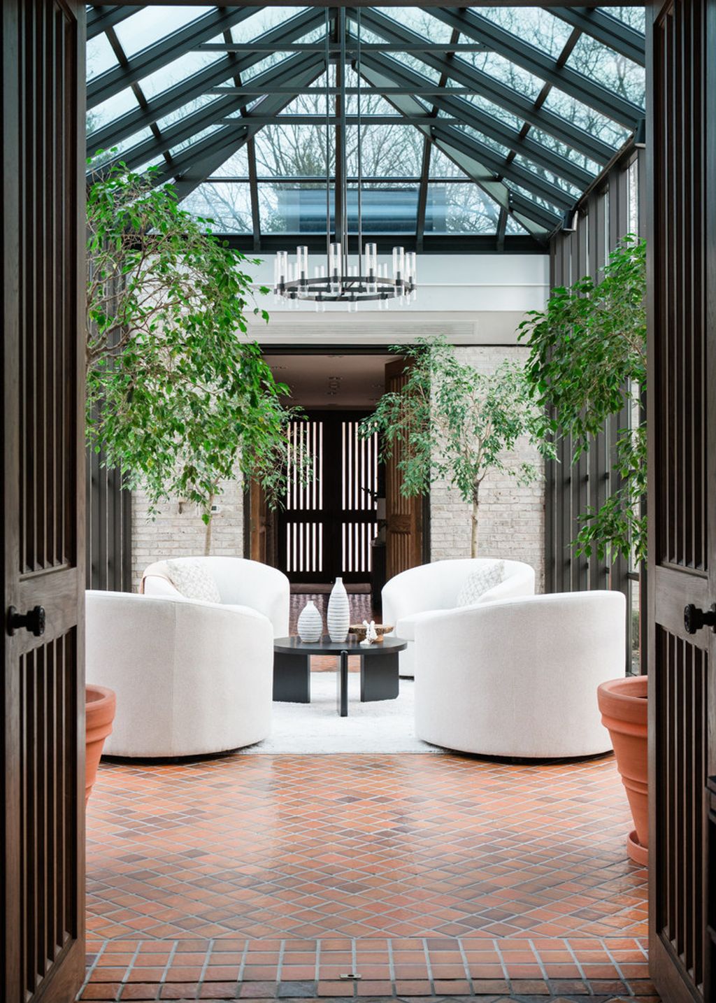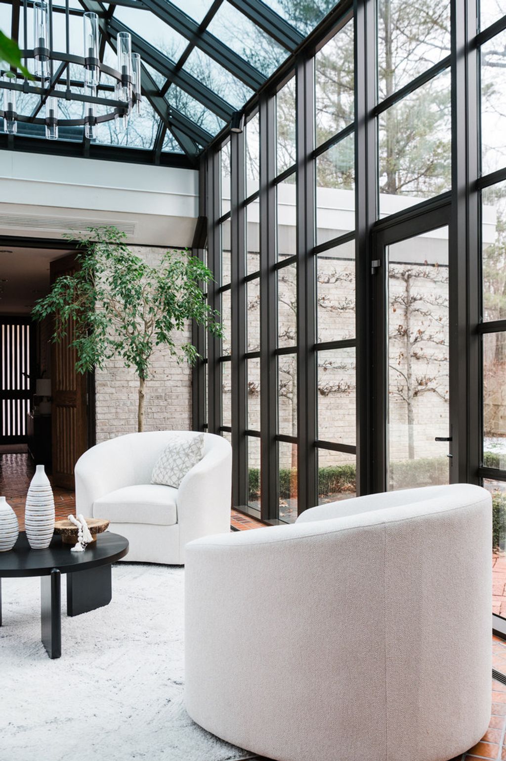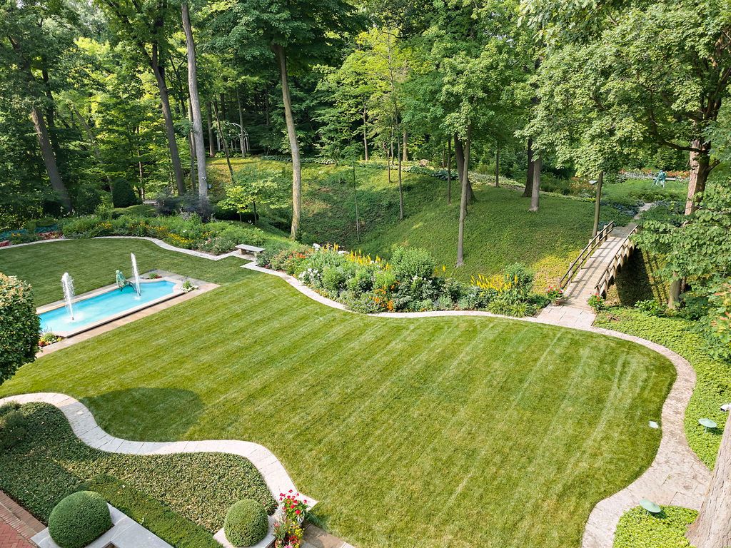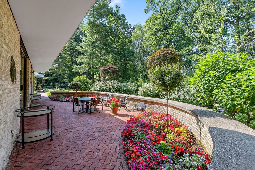 Introducing a historic modernist ranch-style residence on the market for the very first time. Poised on just under eight private wooded acres adjacent to the prestigious Shoreacres Golf Course with incredible grounds and flowering gardens, this meticulously maintained single-owner home was built in 1978 and designed by John Black Lee Associates, a respected mid-century modern architect and proponent of the Glass House School of modern residential architecture from Marcel Breuer and Philip C. Johnson. With a large solarium serving as its centerpiece, this 4,286 square-foot architectural masterpiece is defined by strong indoor-outdoor connection created by open flowing spaces, volume ceilings, skylights, abundant walls of glass and sliding doors leading to the stunning natural surroundings. The original architectural details shine, including the floor-to-ceiling marble fireplaces in the living, family room and primary suite, herringbone-patterned brick flooring and incredible tall interior wood doors. A gracious family room with wet bar, dining room and living room are bathed in natural light, offering multiple options for entertaining. The original, sunny kitchen has skylights, a built-in banquette, and sliding doors to the outside allowing easy access for alfresco dining on one of the many patios. The primary suite has a floor-to-ceiling marble fireplace flanked by built-in cabinetry, a wall of sliding glass doors leading to the west patio, striking hardwood flooring, walls of closets and private bath. The floor plan provides nice flexibility as the east bedroom suite also has a kitchenette and could serve as a guest room, in-law suite or staff quarters, and the family room space could function as a fourth bedroom or guest suite with a large walk-in closet and full bathroom. A first-floor laundry room, large unfinished basement and attached two car heated garage complete the floorplan. Walking the magical grounds, you'll feel as if you are living in a Monet painting with fountains and courtyards, a sweeping lawn shielded by mature trees, a ravine, bridge to the gazebo, and walking paths through immaculate botanical gardens that bloom year-round. Even with its seclusion and privacy, this residence is only minutes from charming downtown Lake Bluff. A once-in-a-lifetime opportunity to own this storybook property!