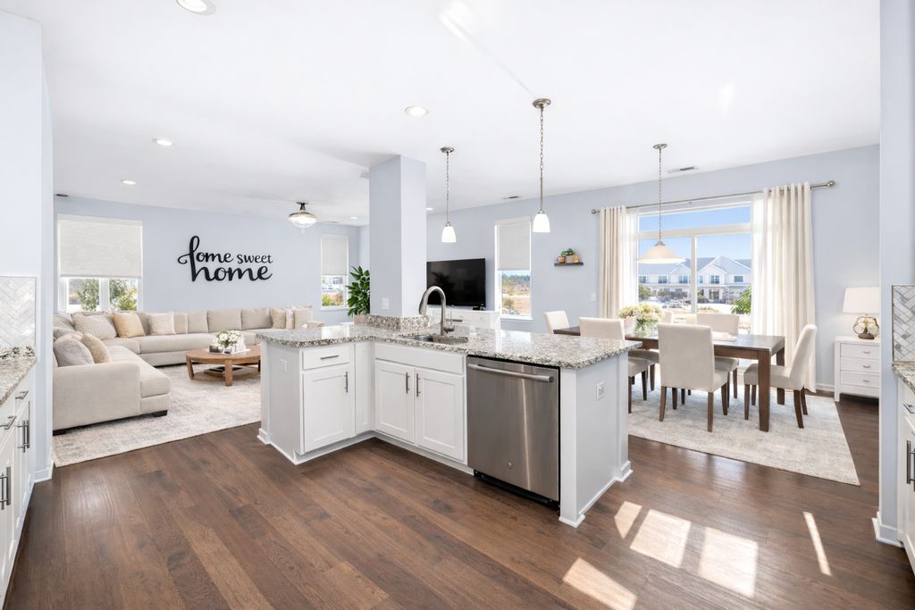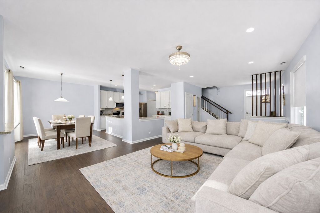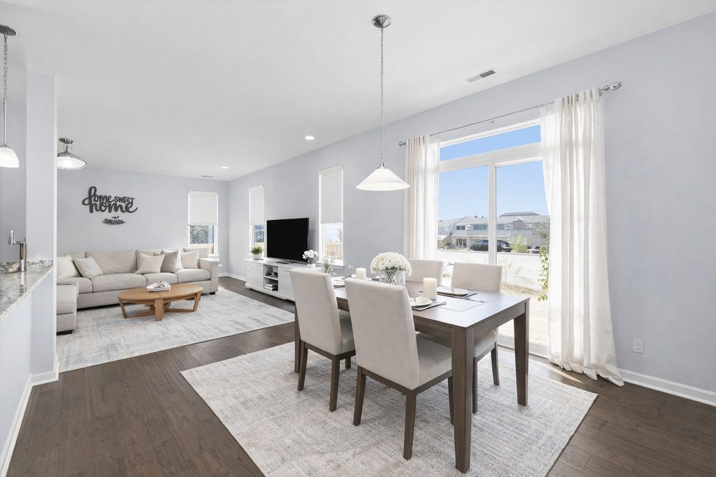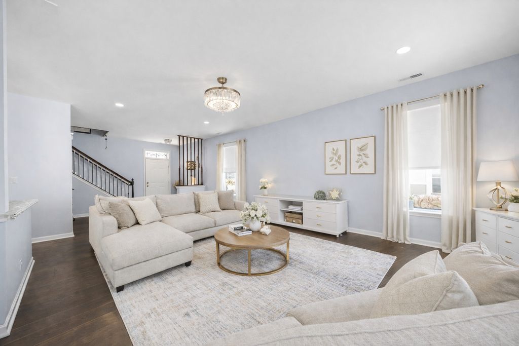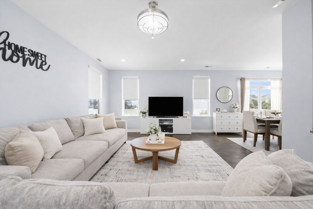 Welcome to refined North facing, lakeside living in this beautifully maintained end unit Campbell model, built in 2019 and ideally located within the highly regarded School District 204. With very low HOA fees and a premium end unit setting along open man made lake views, this home offers rare privacy, additional natural light, and a serene backdrop that elevates everyday living. The main level features 9 foot ceilings and an expansive living space that spans nearly half the first floor, creating a bright and airy atmosphere perfect for both everyday living and entertaining. Recent upgrades include fresh interior paint, an epoxy finished garage floor, premium blackout roller shades, a storm door, and a reverse osmosis drinking water system. The kitchen is anchored by a large center island and complemented by 42 inch white cabinetry, granite countertops with coordinating backsplash, and stainless steel appliances. It flows seamlessly into the living and dining areas, making gatherings effortless. Upstairs, you will find two generously sized guest bedrooms, a full shared bath, and a spacious primary suite featuring a 5 foot walk in shower, linen storage, and a large walk in closet. The second floor laundry room adds everyday practicality. Located in Gramercy Square, convenience is unmatched. Costco and Whole Foods are directly across the street, Fox Valley Mall is just one mile north, and commuters enjoy quick access to the Naperville Route 59 Metra station approximately 3 miles away and I 88 about 4 miles away. School bus service is available within the community. The home includes a transferable 15 year structural warranty.