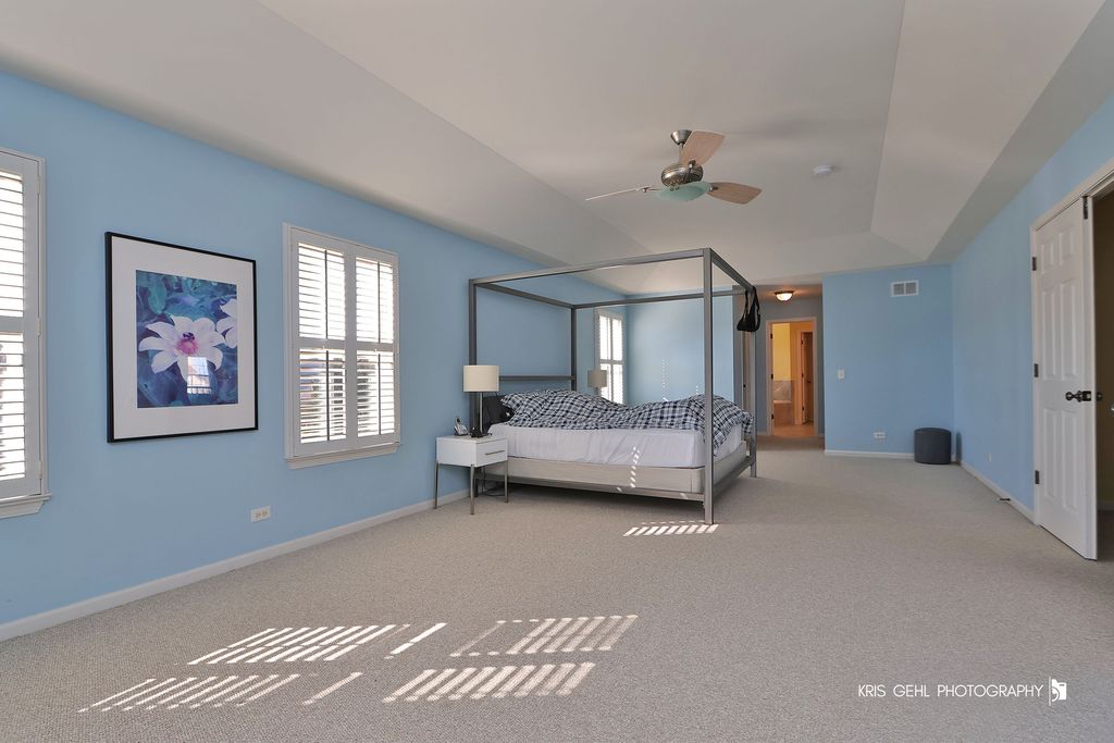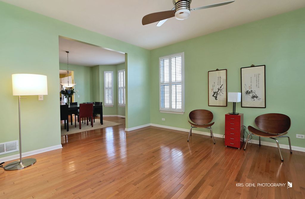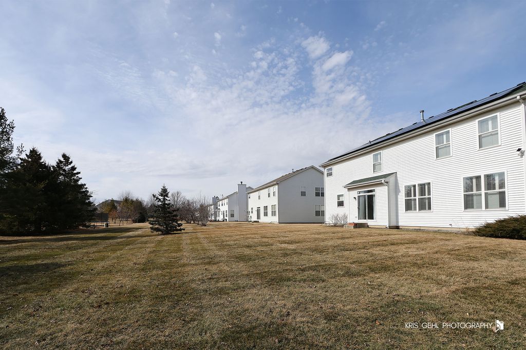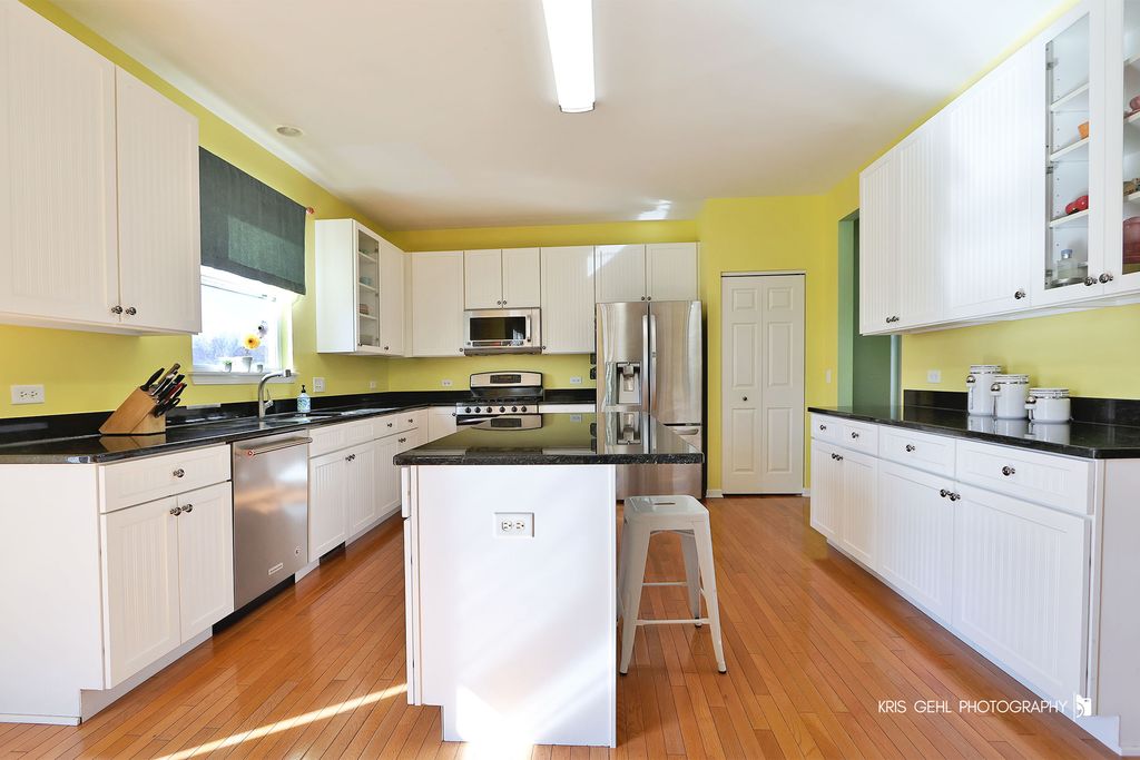 **IMPRESSIVE 5 BEDROOM, 2 STORY HOME OFFERS OVER 3600 SQ FT OF BEAUTIFULLY DESIGNED LIVING SPACE ** Dramatic hardwood floors and 9' ceilings invite you into the open, flowing floorplan, perfect for both everyday living and entertaining. The expansive layout creates a light and bright feel throughout, seamlessly connecting the main living areas. At the heart of the home is a beautiful eat-in kitchen featuring 42" crisp white cabinetry, granite countertops, and stainless steel appliances - ideal for gatherings, cooking, and hosting. A highly desirable first-floor guest bedroom provides flexibility for visitors, in-laws, or a private home office, is conveniently located near a full bath. With a total of 4 full baths, comfort and convenience are built into every level of this home. Other features include custom plantation blinds, designer fans, enormous basement with stubbed in plumbing, energy efficient HVAC system. New roof installed in 2023 with Solar panel system. In Fremont schools/Mundelein High School District!