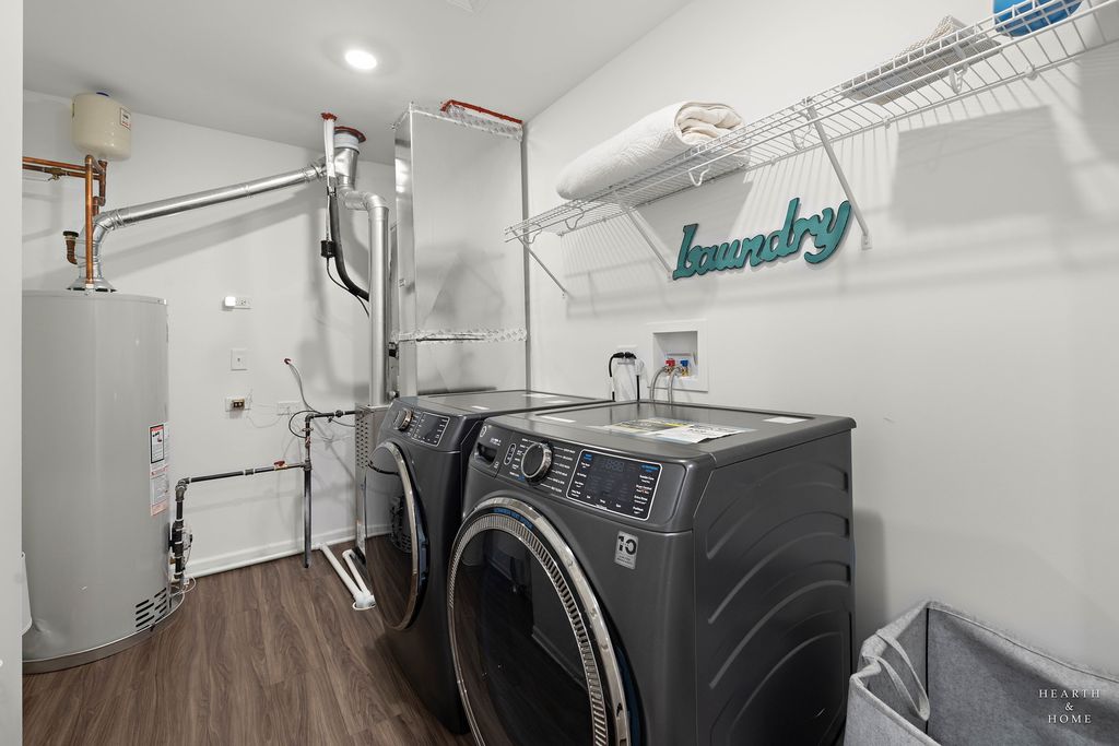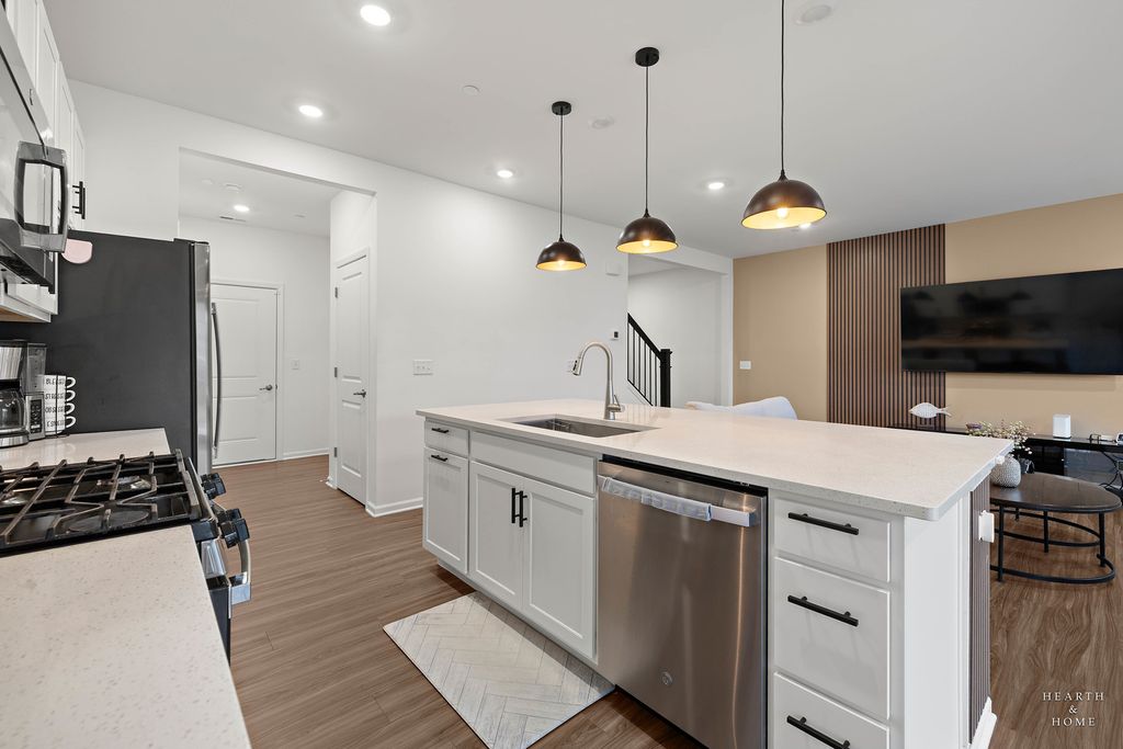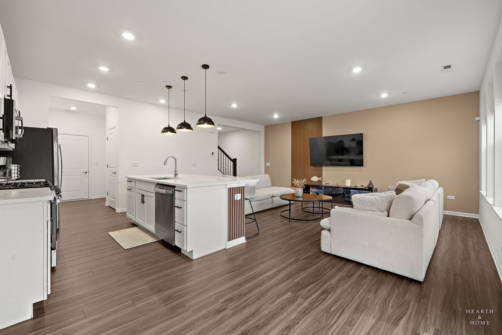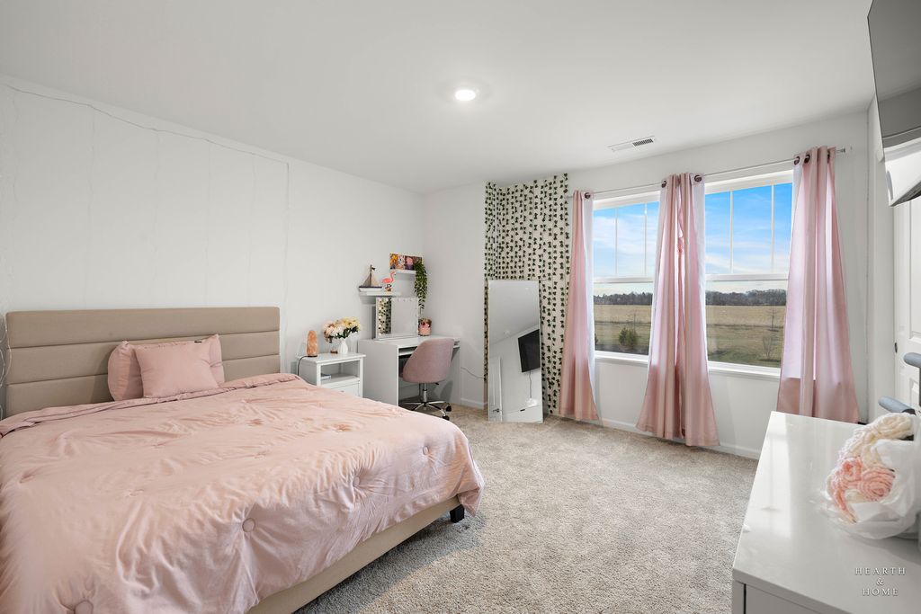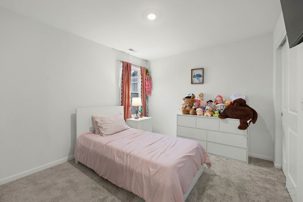 Welcome to your new home! The Marianne model, less than 2 years old, offers 3 bedrooms, 2.1 baths, a 2-car garage, and 1,767 sq. ft. of well-designed living space. The open-concept main level features a spacious great room and dining area. The kitchen includes a large center island, quartz countertops, undermount sink, stainless steel GE appliances, and abundant cabinetry. Energy-efficient construction with LED lighting throughout. Upstairs offers three generously sized bedrooms, two full baths, and convenient second-floor laundry. The spacious primary suite includes a private en-suite bath and walk-in closet. Smart home features include a Ring doorbell and digital thermostat. Enjoy resort-style amenities including an 8,000 sq. ft. clubhouse, fitness center, game room, pool with 18-ft water slide, kiddie pool/spray area, fishing pond, and on-site parks. Conveniently located near Route 47, stores, restaurants, parks, and served by highly rated Huntley D-158 schools.