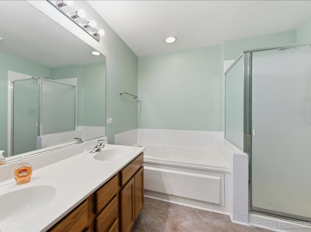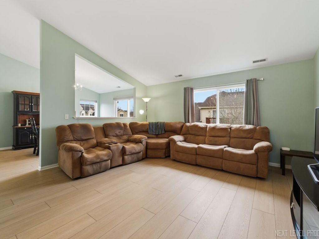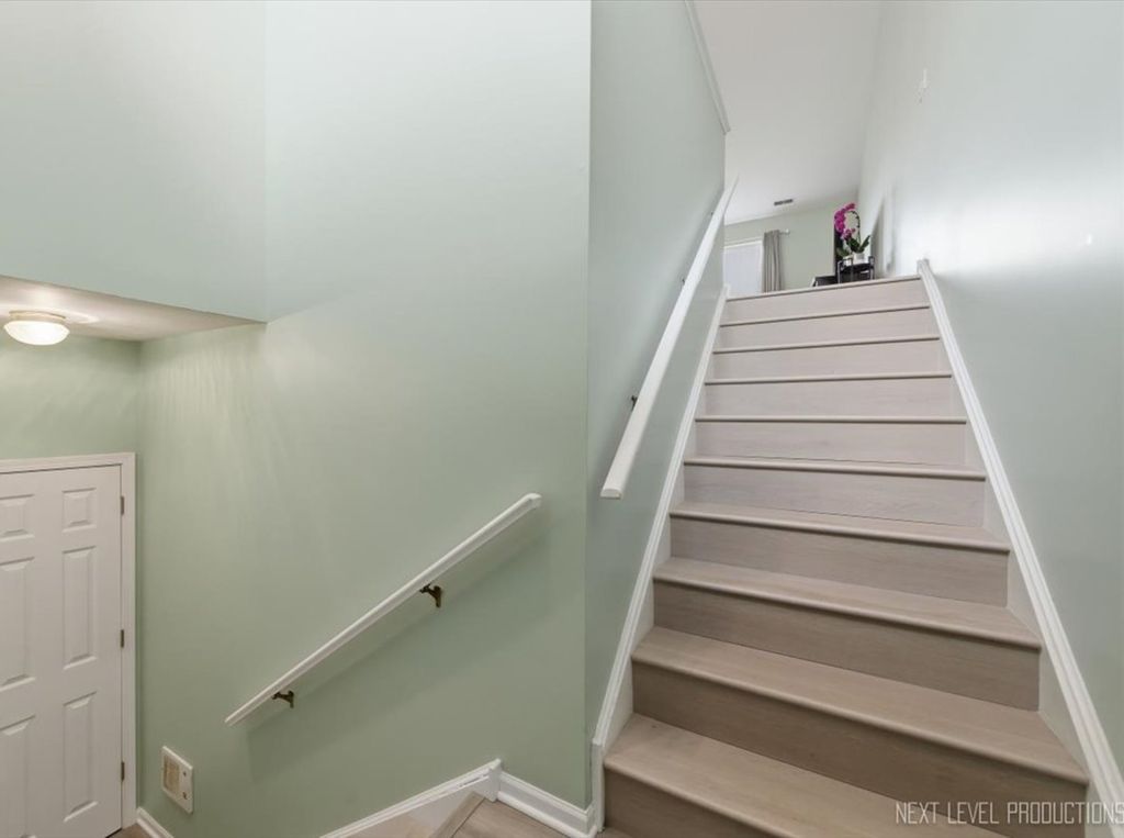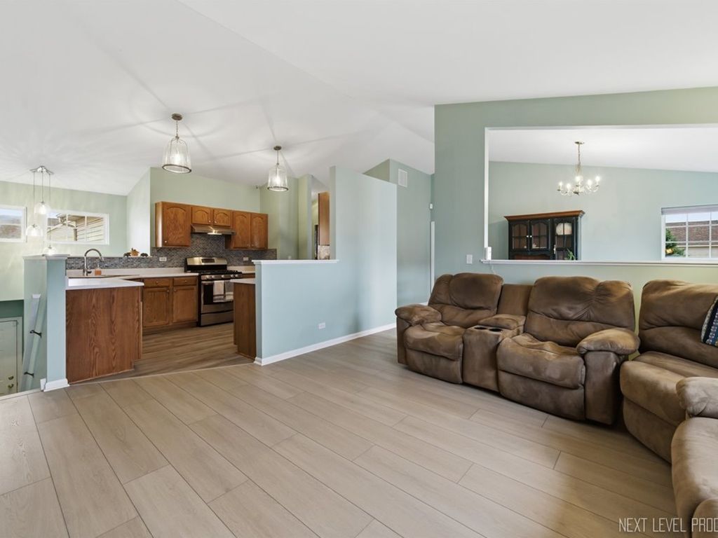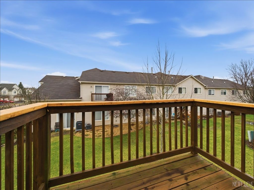 Welcome to this freshly painted, 2nd Floor, spacious 3bedroom, 2bath Townhome featuring vaulted ceilings, new LVT flooring and an open floor plan. The Updated Kitchen includes a Stainless Stove Hood and Sink, beautiful Glass-Mosaic Backsplash, Pantry Closet & New Lighting. The Dining Room includes sliding doors with automatic blinds, that lead to a private balcony - perfect for relaxing or entertaining. Primary Bedroom offers a generous walk-in closet plus a second closet, and the ensuite bath includes a double vanity, soaking tub, and separate shower. Two more spacious Bedrooms with 2nd Bathroom off the hallway. Laundry room on same floor! Move-in ready with custom neutral paint throughout. Enjoy D303 Schools, neighborhood with sidewalks and parks, and access to the community clubhouse, pool and walking trails.