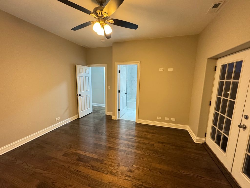 Stunning Gut-Rehabbed 3BD/2BA Condo in Bronzeville | 543 E 43rd St Unit 3W Welcome to this beautifully renovated 3-bedroom, 2-bathroom condo in the heart of Bronzeville. No detail was spared in this top-to-bottom rehab featuring rich hardwood floors throughout, recessed lighting, and an open-concept living and dining area anchored by a sleek wall-mounted electric fireplace. The chef's kitchen boasts stainless steel appliances, granite countertops, a mosaic tile backsplash, cherry cabinetry, and pendant lighting over the breakfast bar - perfect for entertaining. French doors lead to a private outdoor space, and a separate den/office with French doors offers flexible living options. The spacious primary suite features a ceiling fan, dual closets, private en-suite bath, and direct outdoor access. Two additional generously sized bedrooms each offer walk-in closets. The primary bath impresses with a double vanity, marble quartz countertops, marble-look tile, tub/shower combo, and matte black fixtures throughout. A stylishly updated second bath mirrors the same high-end finishes. Additional highlights include an in-unit intercom system, ample storage, and a long hallway with thoughtful utility placement. Steps to public transit, dining, and everything the South Side has to offer. This one checks every box - move right in!