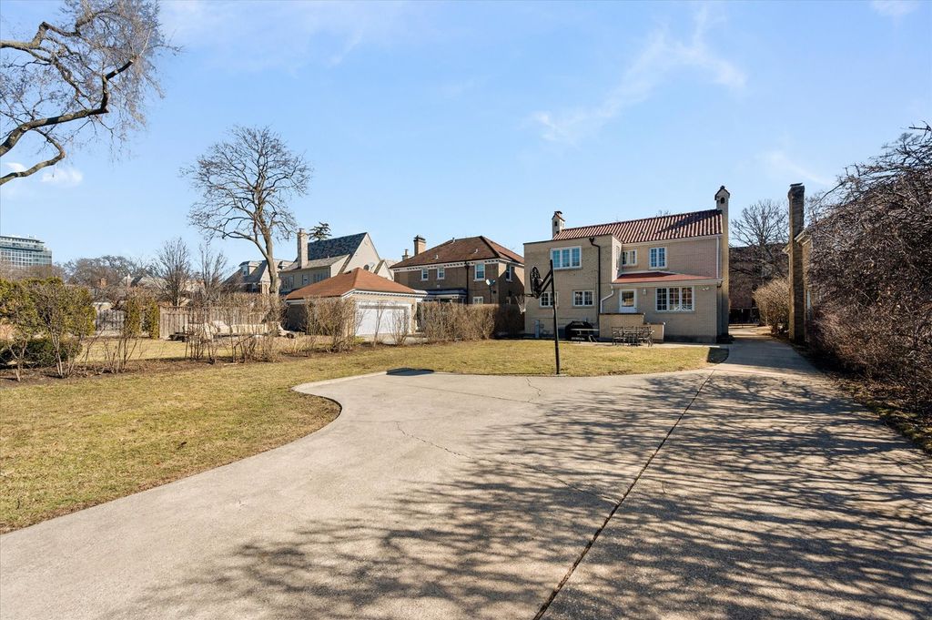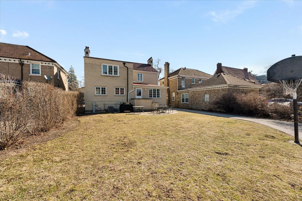 Architectural presence, uncommon scale, and a lot size rarely seen in today's market - this distinguished brick residence offers a compelling opportunity in a time of limited inventory. From the stately facade and arched entry to the sun-filled living spaces framed by leaded glass windows, the home blends timeless character with thoughtful updates. Hardwood floors run throughout generously proportioned rooms designed for both everyday comfort and elegant entertaining. The updated kitchen features warm wood cabinetry, stainless appliances, and peninsula seating, opening naturally to the first floor family room. Upstairs, 4 spacious bedrooms allow room for growth and provide excellent natural light. The primary suite includes a beautifully refreshed bath with classic tilework, glass-enclosed shower, and refined finishes - a true retreat. The finished lower level adds valuable living space, while the expansive backyard sets this property apart. With a wide, deep lot, patio area, full driveway, and two-car garage, outdoor space of this scale is increasingly difficult to find. Homes combining architectural integrity, updated baths, usable square footage, and a lot of this size rarely come available. An exceptional offering in today's market. Ideally located near neighborhood parks, schools that define River Forest living, this home offers the character, space, and location that buyers here value most.