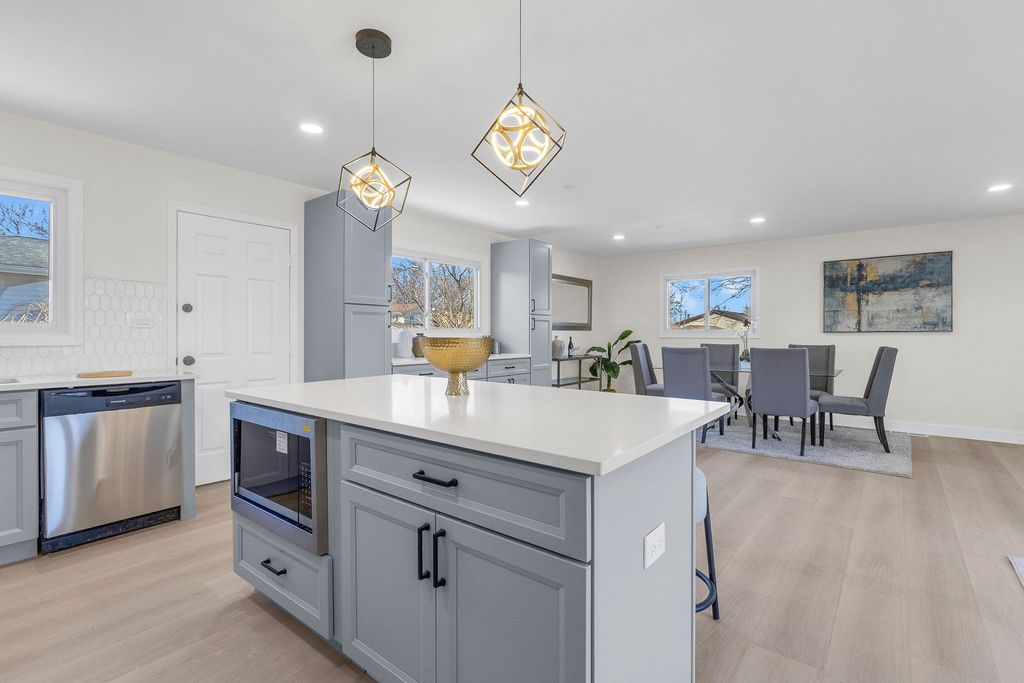 Fully remodeled and move-in ready, this 3-bedroom plus den/office, 2-bath home offers a rare setup with two separate 2-car garages on the lot - an uncommon find in this neighborhood - plus a driveway that fits 4 additional cars. The second garage provides incredible flexibility for extra parking, storage, a workshop, business equipment, or future customization. Inside, you'll find fresh paint throughout, brand-new luxury vinyl plank flooring, newly remodeled bathrooms, and a spacious open-concept layout perfect for entertaining. The kitchen features a huge island and brand-new appliances, creating a clean, modern feel. Located in an amazing Schaumburg neighborhood close to shopping, dining, parks, and major roadways, this home delivers space, updates, and functionality that are hard to find.