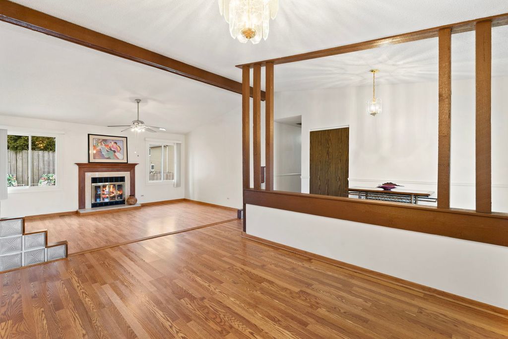 **Ready, set, go!** Enjoy true one-level living with space to spread out in this 4-bedroom, 2 full bath home offering an open-concept layout and exceptional functionality. The spacious living room, dining room, family room, and kitchen flow seamlessly-perfect for everyday living and entertaining. The kitchen layout is ideal for hosting, with generous counter space and room to accommodate large gatherings with ease. Adding even more flexibility, the heated 2 garage features a dedicated laundry area complete with a sink, additional stove, and extra counters-creating incredible prep space for holidays, entertaining, or everyday convenience. All four bedrooms are generously sized. The 4th bedroom is currently incorporated into the primary suite as a sitting area, creating a luxurious retreat, but can easily be converted back to a separate bedroom if desired. Step outside to a great-sized, fully fenced yard with a deck-ideal for relaxing, entertaining, or pets at play. Located within the highly sought-after **Lake Park High School** district and just minutes from shopping, restaurants, parks, Metra train station, and with convenient access to I-390 and I-355, this home offers both comfort and connectivity. Come make it yours!