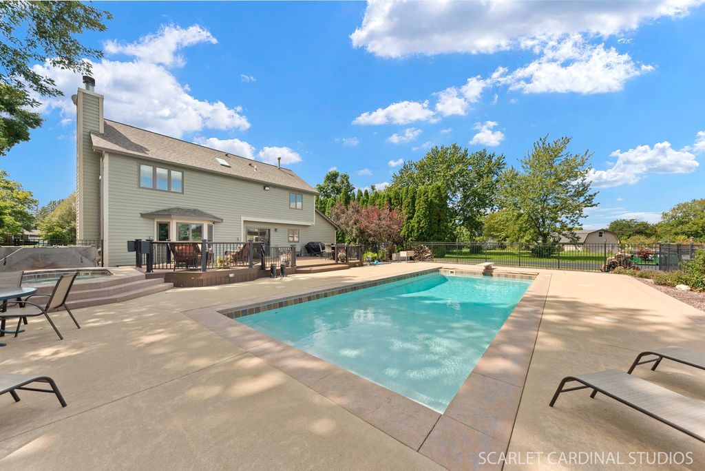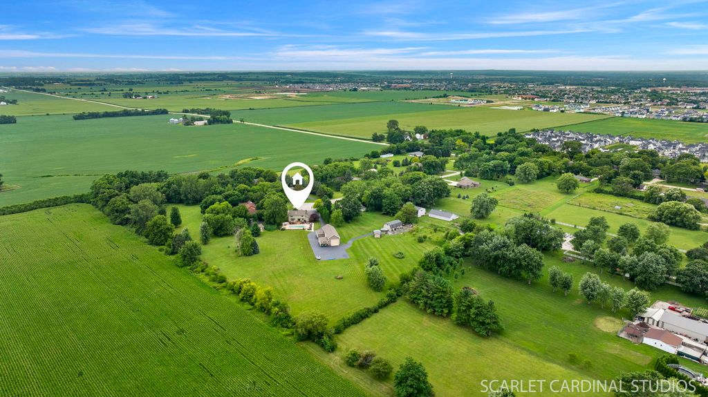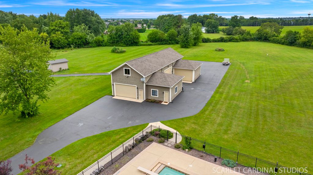 Acreage + Updated Home + Pool + Outbuilding in Oswego! This property offers the perfect blend of modern updates and an outbuilding designed for car enthusiasts, business owners, or hobbyists. The home features an updated kitchen (2016) with medium cherry cabinets and Cambria quartz countertops, along with two brand-new full baths and a half bath with custom tile and granite/quartz counters. Additional updates include Anderson casement windows throughout, three skylights (2020), siding and exterior doors (2018), a new roof (2021), and a premium Trex deck (2022). Mechanical updates include a new AC/furnace (2024), a dual alternating sump pump system (2019), and a radon mitigation system (2022) and new Water Softener (2026). Both the attached garage and the basement feature epoxy flooring. The exceptional outbuilding is constructed with 2x6 framing, cedar siding, and 3/4" plywood interior walls. It accommodates up to 11 cars across multiple bays, including a 12' shop door and a dedicated restoration bay with exhaust and heat. The building is fully equipped with four gas heaters, a large tank compressor with air lines, high-voltage outlets (240v), a 2000lb chain hoist, and two sinks. It also includes a finished front room with a newer bath, perfect for an office or in-law suite. The 2nd floor is equipped with extra storage and a finished bonus room! Outside, enjoy a gorgeous pool (new pool heater 2025), maintenance-free decking, and a spacious lot where horses are welcome (1 per acre). 3 Total Water Heaters on site (2 in home and 1 in outbuilding). Additional shed is perfect to store pool supplies. Surround sound outdoor speakers throughout the pool area. Gas Furnace for office in outbuilding. Onsite Automatic Generax Generator. This versatile property offers functionality and comfort you won't find anywhere else!