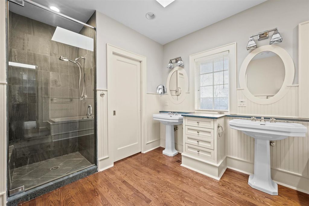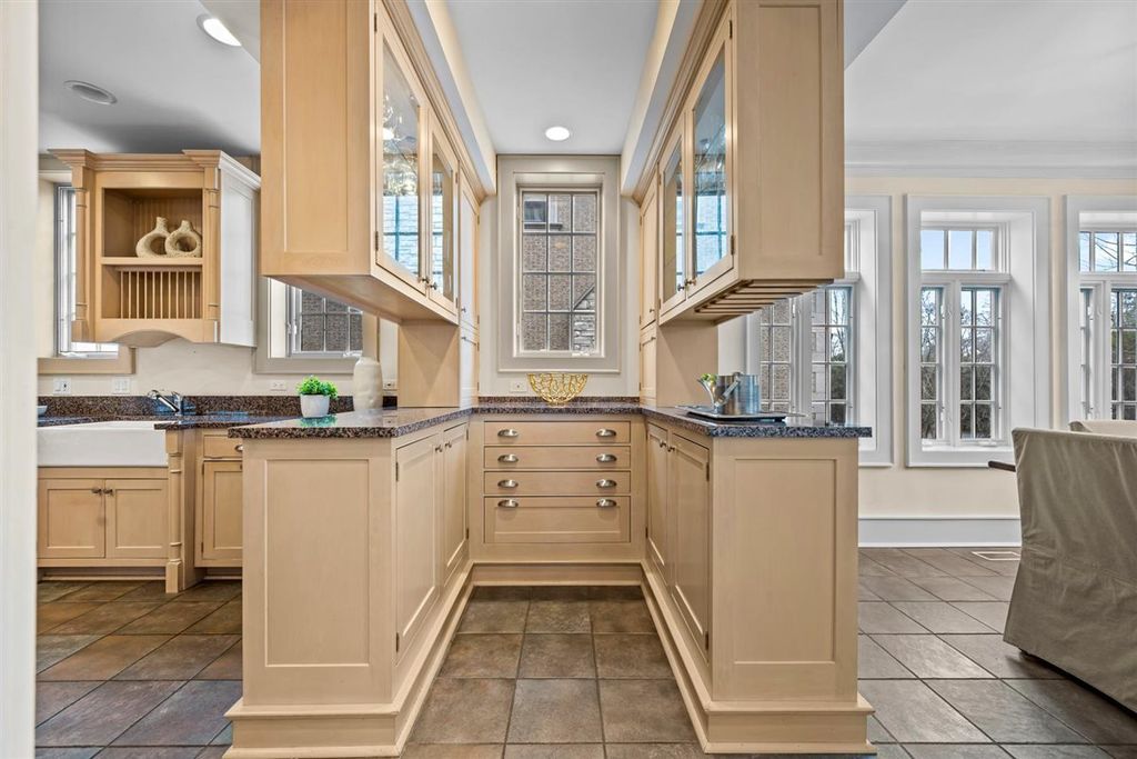 Perfectly located on soughtafter Sheridan Road in the heart of Kenilworth, this stately redbrick colonial sits quietly behind a circular drive and landscaped gardens, offering wonderful privacy on nearly a halfacre. Originally built in 1918, the home has been extensively renovated to blend timeless character with the comfort and functionality of modern living. Large windows throughout capture morning sunrises over the lake and afternoon light reflecting off the backyard pool. A gracious foyer anchors the original entry and opens to an elegant dining room and a beautiful living room with a focal fireplace. Just beyond is a sunfilled sitting room or office wrapped in windows-an inviting place to work or unwind. The main living area centers around an oversized kitchen with custom cabinetry, highend appliances, a spacious island, and a bright breakfast room. The adjacent 650 sq. ft. family room features a 10foot ceiling and offers an easy, comfortable space for everyday living. A second powder room and a welldesigned mudroom help keep everything organized. As you move upstairs, the primary suite feels like a true retreat with fireplace, spainspired bath, and a skylit walkin closet. All family bedrooms are generous in size: one enjoys its own timeless ensuite bath, while the other two share a large common room-ideal as a hangout or homework space-and a beautifully updated bathroom with a double vanity. The third floor includes a bedroom, office, and full bath, creating the perfect setup for a teenager, guests, or anyone wanting extra privacy. The basement offers a great recreation room with multiple seating areas, a handsome wine room, and exceptional storage, along with space for an additional laundry area. Outdoors, the home is designed for easy entertainment with manicured grounds, multiple patios, and a beautiful pool. One bay of the threecar garage could even be transformed into a fantastic pool house. All of this is just a short walk to the beach, parks, the revitalized Plaza Del Lago with Starbucks, shops, and restaurants, as well as the awardwinning school - Joseph Sears (JK-8) and New Trier.