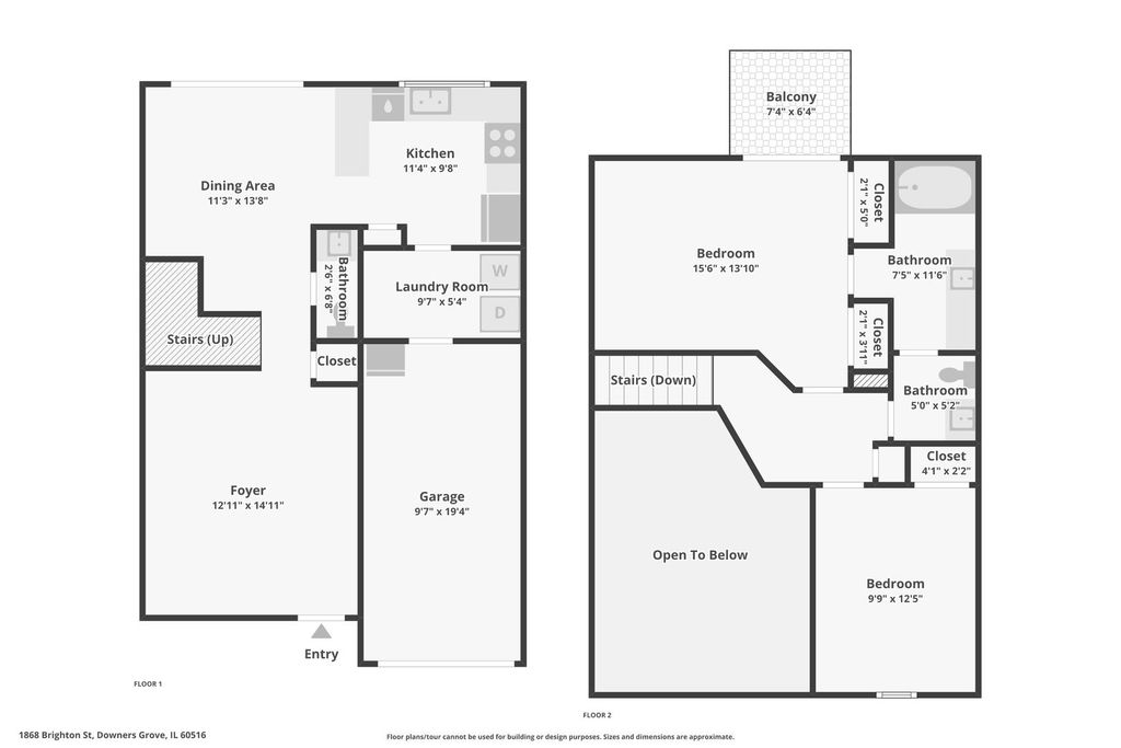 Welcome to Victoria Ridge in Downers Grove! This lovely 2-bedroom, 1.5-bath townhome offers an open and inviting floor plan with a spacious living room featuring two-story ceilings and natural light. Sliding glass doors lead to a nicely sized patio-perfect for relaxing or entertaining. The main level includes a convenient first-floor laundry room. Well-designed kitchen with spacious breakfast bar that flows seamlessly into the dining areas. Upstairs, you'll find two generously sized bedrooms and a full bath w/soaking tub and skylight. 2nd floor deck off master bedroom. Enjoy an amazing location just minutes from shopping, dining, parks, and Metra transportation. Don't miss this opportunity.