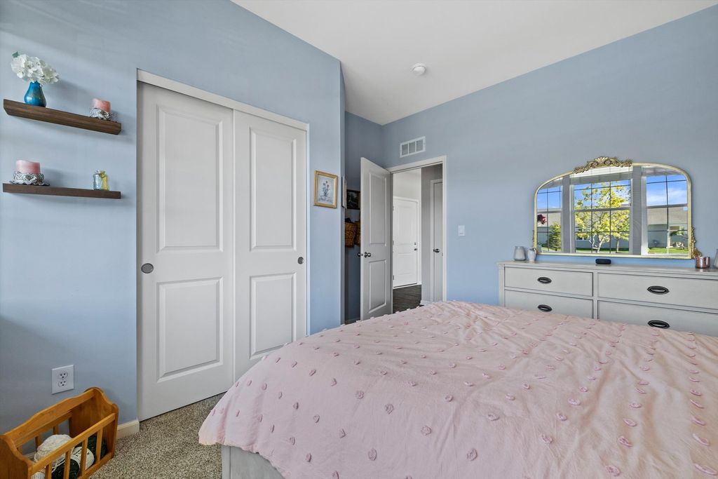 Welcome to Stonewater, where natural beauty meets modern comfort! No need to wait months for construction and then spend thousands more finishing the details and updating builder-grade basics when you can move into a newer home that already has it all! Inside the popular Clifton model, you'll find 1,863 square feet of thoughtfully designed one-level living that's truly move-in ready with thoughtful upgrades already completed; including upgraded light fixtures and ceiling fans, stylish cabinet hardware, and a beautifully tiled kitchen backsplash; features that often come at additional cost in new construction. This home offers two spacious bedrooms plus a versatile flex room ideal for a third bedroom, office, hobby space, or game room. The primary suite is a true retreat, complete with two oversized walk-in closets and a spa-inspired en-suite bath with dual sinks, a walk-in shower, and ample storage. The open-concept layout features 9-foot ceilings and a spacious great room flowing into a beautifully appointed kitchen with quartz countertops, stainless steel appliances, a large island, and walk-in pantry. Designer white cabinetry and warm finishes create an inviting space perfect for entertaining or everyday living. Practical upgrades set this home apart even further, including a water softener, reverse osmosis system, partially finished basement and wood blinds which are major value additions rarely included. Energy-efficient features such as an ERV furnace and tankless water heater provide comfort and savings, while America's Smart Home Technology includes a video doorbell, smart thermostat, and smart locks for modern convenience. Situated on a premium corner lot, the fully sodded yard with additional landscaping for added curb appeal is professionally maintained year-round. Outdoor living is already elevated with both front and rear covered porches and an extended back patio that creates a larger, more functional entertaining space, something many new builds charge a premium to add later. With multiple improvements already in place, this home offers the convenience, comfort, and cost savings that combines the benefits of newer construction with the added value of completed upgrades. You can move in and immediately enjoy your home while surrounded by tranquil ponds, mature trees, scenic walking paths, and serene waterfalls, the setting offers established beauty in a freshly built neighborhood!