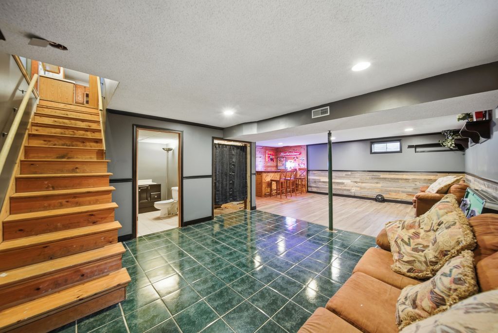 So much potential ~ 3 bedroom ranch - living room has cathedral ceiling in the front section, large open kitchen with dining, main floor laundry has full bath, partially finished basement offers bar area and open rec space with a half bath, mud room from the kitchen to the driveway or out back to the deck, fenced backyard -with 2 sheds, old section of basement is accessed thru exterior, 100x135 lot, 2 car garage with car port, whole house Generator. Garage floor is being professionally finished.