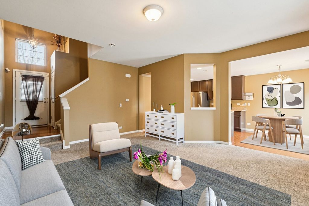 Welcome home to highly sought-after Prescott Mill! This beautifully maintained 3-bedroom townhome offers the perfect blend of comfort, space, and convenience. The bright and spacious living room flows effortlessly into the kitchen, which features abundant cabinet and countertop space along with stainless steel appliances-perfect for everyday living and entertaining. Upstairs, you'll find three generously sized bedrooms, including a spacious primary suite complete with a walk-in closet and a private ensuite bathroom featuring dual vanity sinks. A versatile loft area provides the ideal space for a home office, reading nook, or flex space, along with the added convenience of second-floor laundry. Enjoy Prescott Mill's scenic walking paths, peaceful pond views, and neighborhood parks that create a welcoming community atmosphere. Ideally located directly across from Oswego East High School and just minutes from shopping, dining, and everyday conveniences. Move-in ready and beautifully cared for-this is one you won't want to miss!