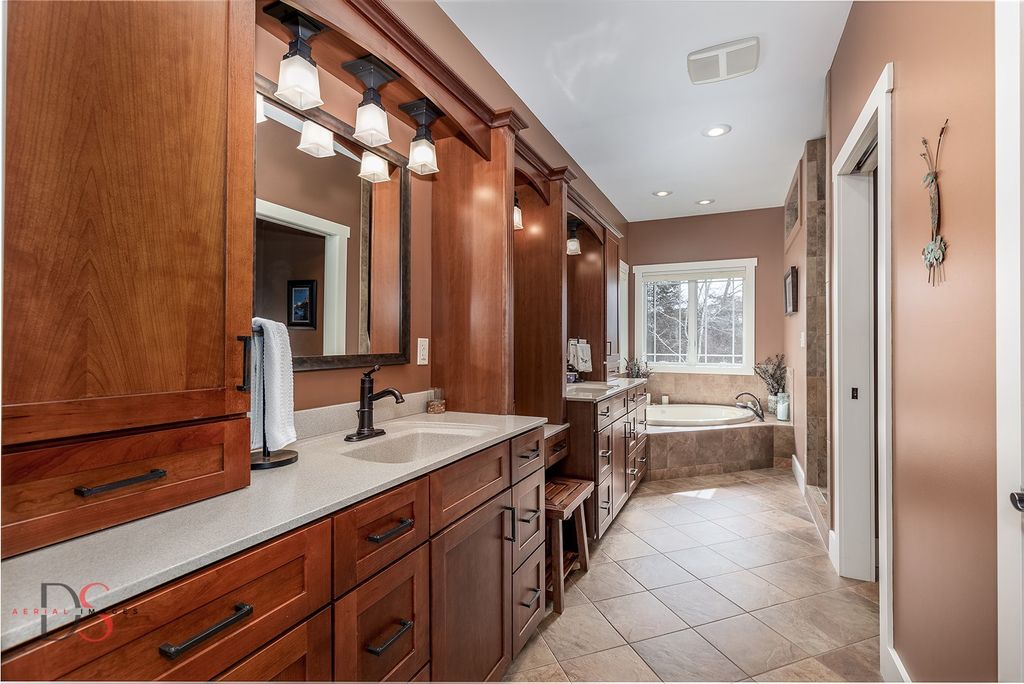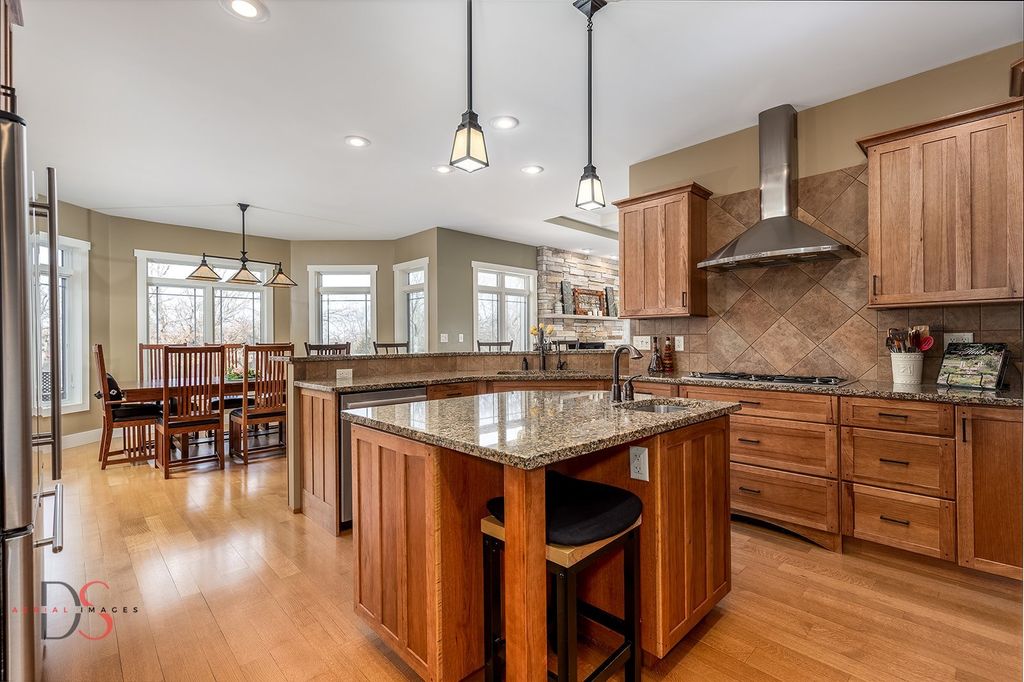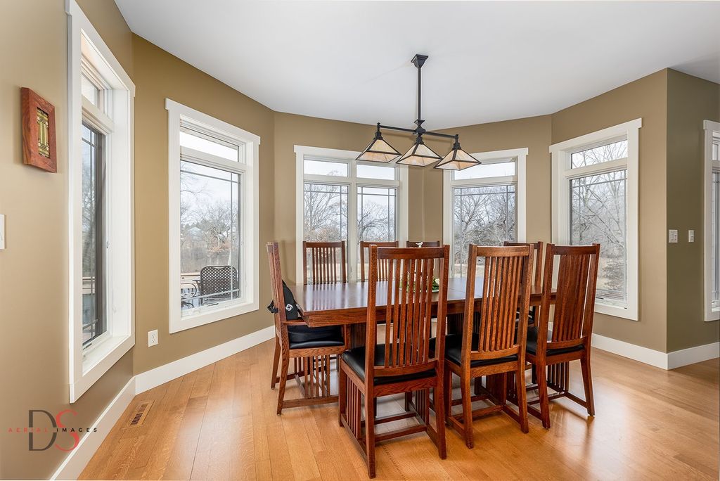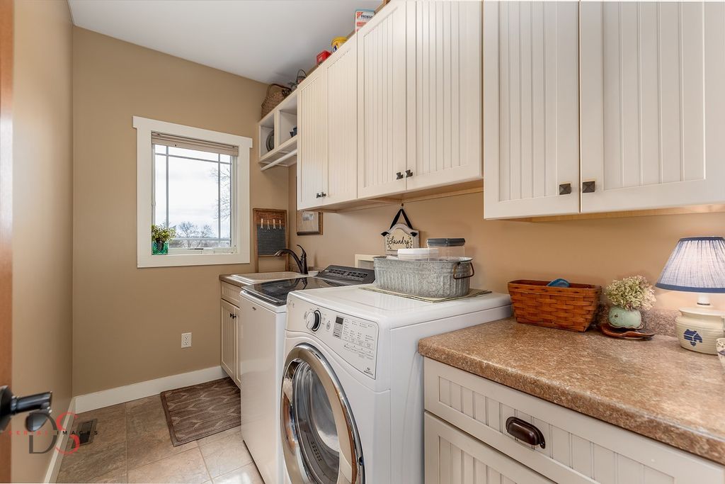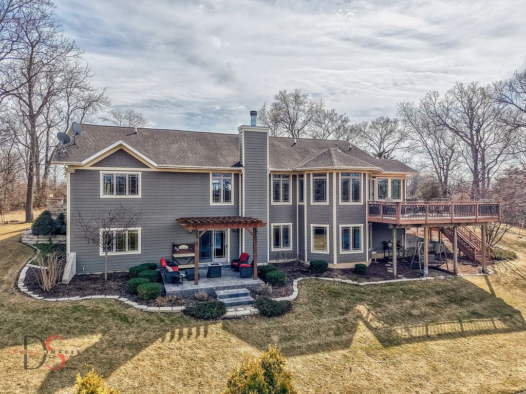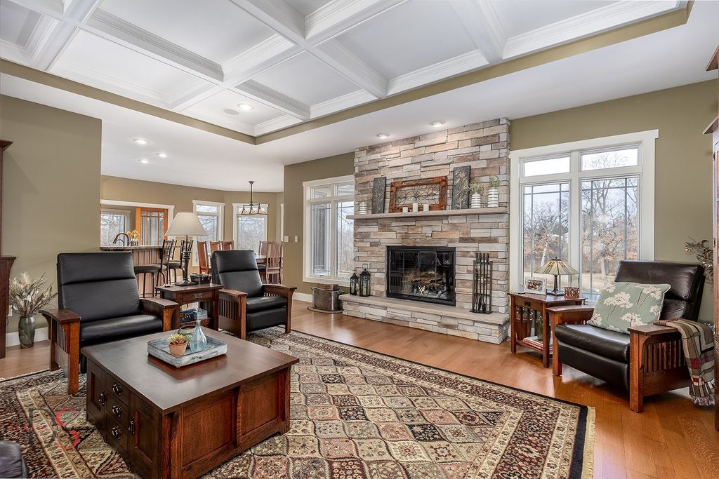 Stunning custom-built 5-bedroom, 4.1-bathroom ranch with a walkout basement set on 11.46 private acres just minutes from Starved Rock State Park. With a scenic private pond, dock, sandy beach, wooded trails, and a creek along the back of the property, this estate offers an exceptional opportunity for luxury country living within easy reach of the Chicagoland area - ideal as a full-time residence or elevated weekend retreat. Exceptional curb appeal welcomes you down a beautifully landscaped walkway and into a grand foyer that opens to a spacious living room featuring quarter-sawn oak hardwood floors, a fireplace, and sweeping pond views. The living room flows seamlessly into the dining area and a chef's kitchen thoughtfully designed for both refined entertaining and everyday living. Highlights include hickory cabinetry, granite countertops, a peninsula with seating, center island, double ovens, gas cooktop, and an impressive 6x8 walk-in pantry. Just off the kitchen, a bright four-season room leads to a low-maintenance Trex deck overlooking the pond - a serene setting for morning coffee or sunset gatherings. The main-level primary suite offers vaulted ceilings, two walk-in closets, and a luxurious private bathroom complete with double sinks, a makeup area, private powder room, corner soaking tub, and a spacious tiled walk-in shower. The main floor also includes a second bedroom, a full guest bathroom, a half bathroom, laundry room, and a functional mudroom with built-in storage off the 2.5-car garage, which features heated floors, 10-foot doors, built-in cabinetry, and a utility sink. An open staircase leads to the walkout lower level with tall ceilings and large windows that flood the space with natural light. The expansive family room includes a second fireplace and French doors opening to a concrete patio. Three additional bedrooms and two full bathrooms complete the lower level, including one private ensuite bathroom and one shared bathroom. A sitting room with wet bar and bay window overlooking the pond, plus a 5th bedroom/flex/office or playroom, add impressive versatility. Additional features include radiant heated floors throughout - including the garage - with four zones for efficiency and comfort, a whole-home Generac generator for peace of mind, reverse osmosis system, two water heaters, comfort-height toilets, 2x6 construction, and freshly repainted interior (2021). Outdoors, the 11.46-acre setting is equally remarkable, offering privacy, and recreation, just a short drive from the city. Whether you're seeking a peaceful primary residence or a luxurious escape near one of Illinois' most iconic destinations, this exceptional property delivers space, craftsmanship, and lifestyle without compromise.