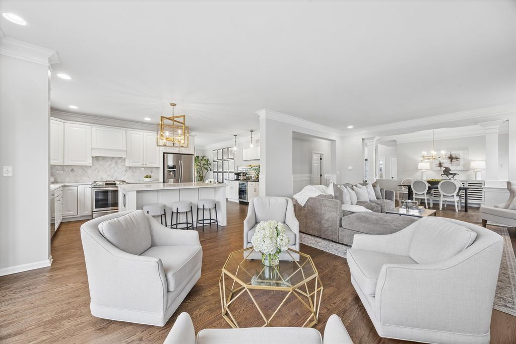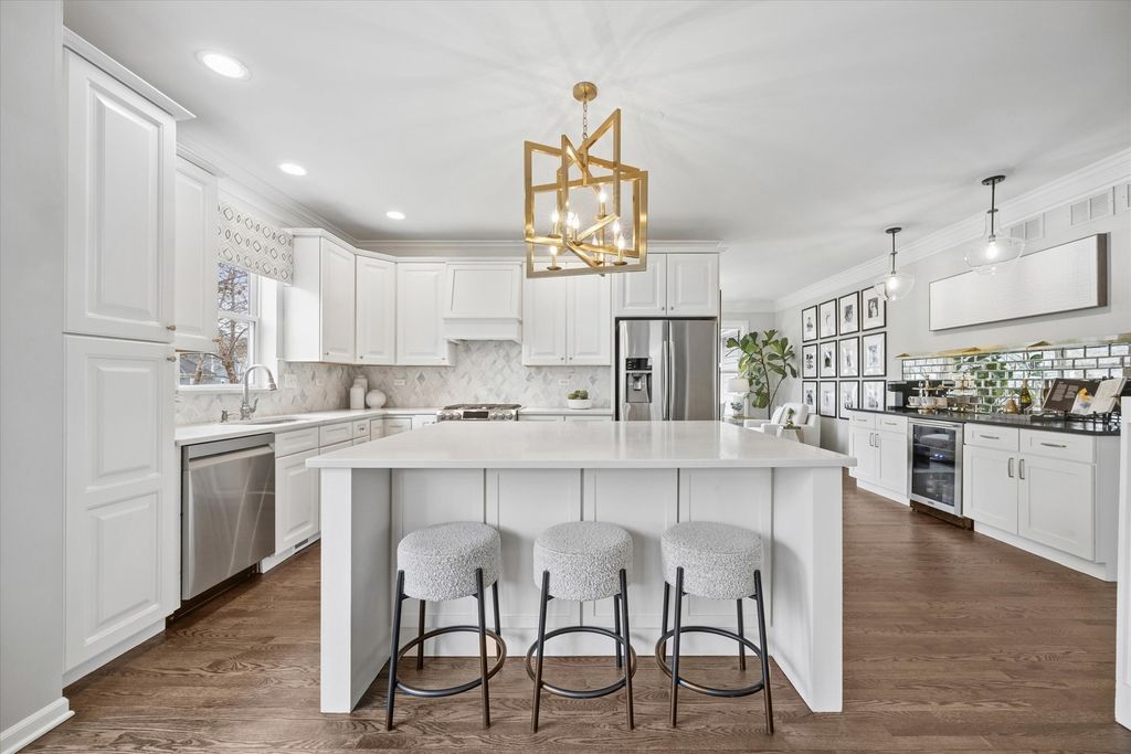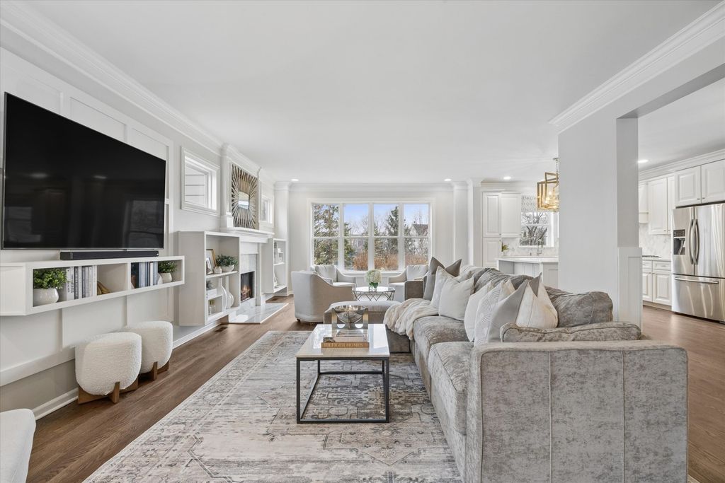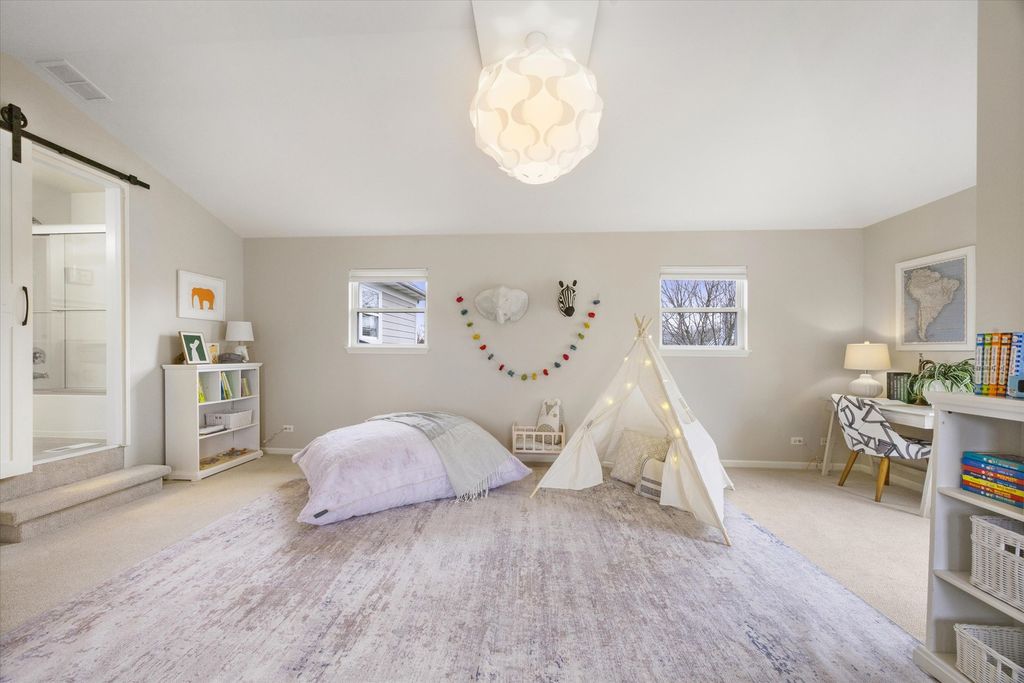 Step into this beautifully updated home in the welcoming Windemere neighborhood, where thoughtful design and exceptional craftsmanship come together across more than 3,800 square feet of finished living space. An inviting front porch sets the tone, offering the perfect place to enjoy a quiet morning overlooking the professionally landscaped front yard. Inside, the main level unfolds with a welcoming foyer, a spacious first-floor office or optional bedroom, and an open dining area that flows seamlessly into the oversized family room, highlighted by custom detailing and a gas-log fireplace. At the heart of the home is the stunning chef's kitchen, designed for both everyday living and effortless entertaining. A large custom island anchors the space, complemented by quartz countertops, stainless steel appliances, custom cabinetry, island seating, and a stylish dry bar with beverage fridge and dedicated coffee and tea station. Just beyond, the sunroom is filled with natural light and showcases sweeping views of the expansive backyard and custom paver patio, creating a seamless connection between indoor comfort and outdoor living. Upstairs, the private primary suite offers a peaceful retreat with a spa-inspired bath featuring dual vanities, a large walk-in shower, and two spacious walk-in closets. Additional bedrooms are generously sized with custom closet organizers, along with a massive bonus room ideal as a playroom, media space, or fifth bedroom. The finished deep-pour basement expands the home's versatility with space for recreation, fitness, entertainment, a large storage room, and a dedicated workbench area. Outdoor living is equally impressive. The expansive paver patio, complete with a Gem Pond-designed water feature and a second patio area perfect for a firepit or additional seating, creates a beautiful setting for relaxing or hosting gatherings. The wide lot and open green space beyond provide a private, picturesque backdrop. Ideally located just steps from Peck Farm's scenic trails and parks, and less than 10 minutes to downtown Geneva and the Metra, downtown Batavia, and the shopping and dining along Randall Road. All within the award-winning Batavia School District 101. 723 Branson Drive offers the rare combination of thoughtful updates, exceptional outdoor space, and an unbeatable location in one of Batavia's most welcoming neighborhoods. Exterior painting is scheduled once weather permits. Updates: Interior Paint (2026) Refinished Hardwood Floors (2026) Two Furnaces (2026) Dishwasher (2026) New Lighting (2026) Soft-Close Cabinets & Drawers (2026) Water Softener (2025) Sealed Paver Patio & Pergola (2025) Carpet (2022) Updated Primary Bath (2022) Updated Second Bath (2022) Updated Powder Room (2022) Water Heater (2022) Second Paver Patio (2022) Roof (2020) Updated Kitchen (2019) Finished Basement (2019) Exterior Painting Scheduled (2026) Owners are IL licensed realtors.