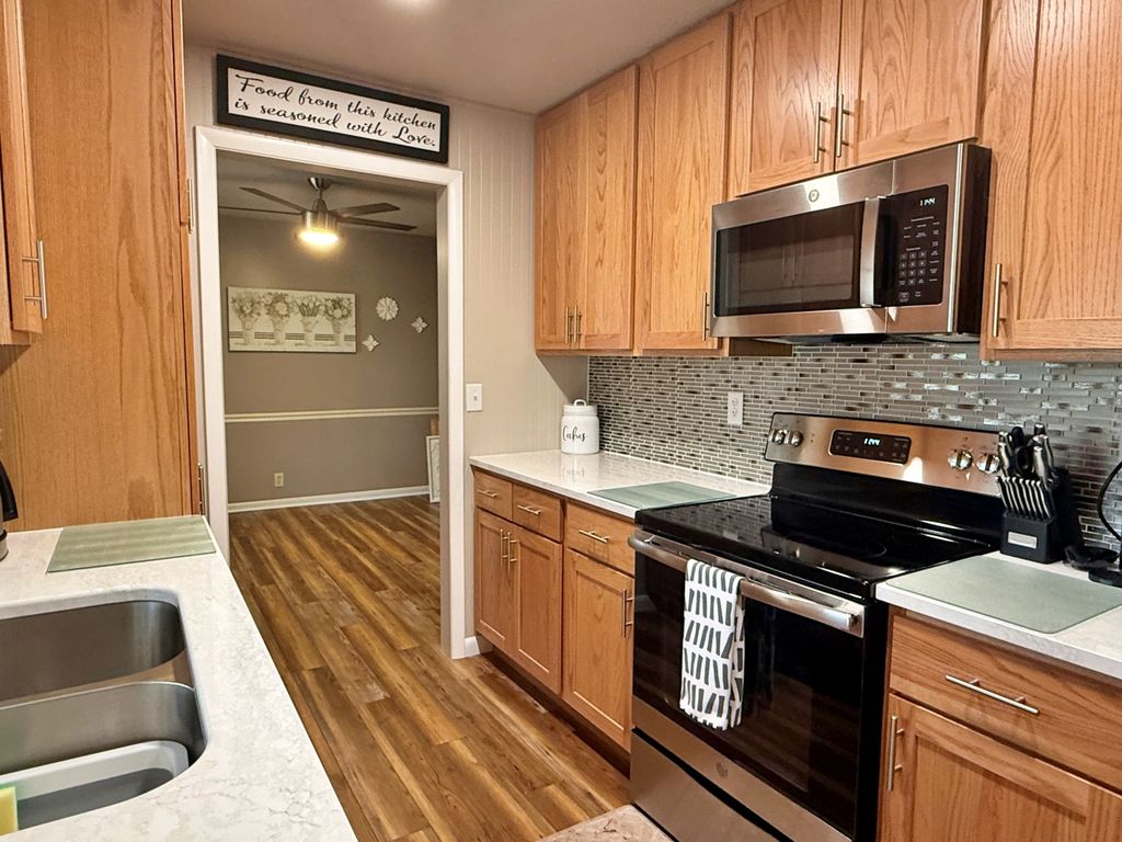 This welcoming, well-cared-for home has been lovingly maintained and updated over the years, offering comfort, reliability, and peace of mind for its next owner. From the moment you arrive, you can see the pride of ownership and the many improvements that have been made to keep the home in great shape. Major exterior updates include a roof (2011), 6" gutters and downspouts (2013), updated fascia and trim (2018), and new windows installed in Fall 2022. Inside, the home features an updated kitchen with electrical upgrades, new carpet, luxury vinyl tile flooring, fresh interior paint, and a primary bathroom with a walk-in shower and updated lighting. The crawlspace was professionally drained and encapsulated in 2024 for added protection and efficiency. Additional highlights include updated appliances, a high-efficiency York heat pump and air handler, water heater (2018), and a built-in 3.5' x 5' family safe room. This home offers a great mix of updates, comfort, and long-term care.