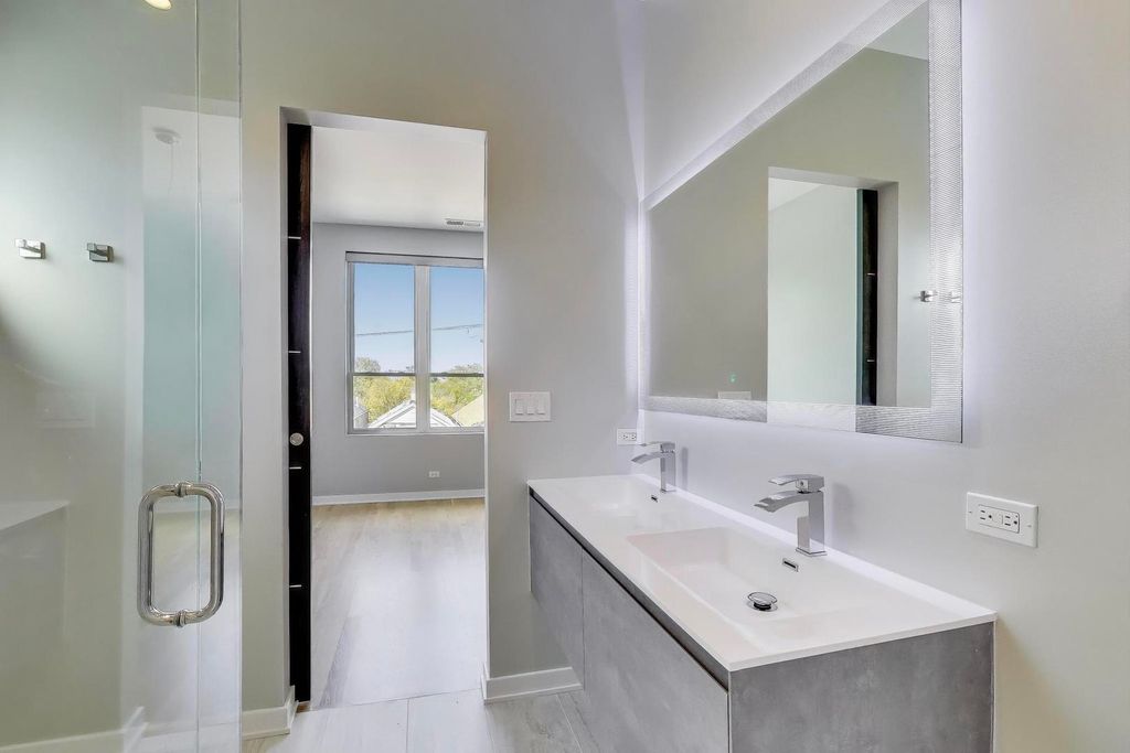 Penthouse living meets modern updates in this stunning 2-bedroom, 2-bath condo in the heart of Pilsen. Originally built by award-winning Galileo Construction, this top-floor home combines sleek, contemporary design with thoughtful recent upgrades that set it apart. Step into a sun-filled living and dining space with nearly 10-foot ceilings, refinished hardwood floors, and 8-foot doors throughout. The kitchen now features a custom island-an upgrade from the builder-grade design-complemented by imported Tafisa cabinetry, quartz countertops, and stainless steel appliances. A spacious balcony just off the living area creates a seamless flow for indoor/outdoor entertaining. The primary suite offers a large walk-in closet and a freshly renovated spa-like bathroom with a double-sink vanity and striking custom tilework. A generous second bedroom and brand-new second bathroom renovation ensure comfort and style at every turn. One of this home's most coveted features is the private rooftop deck-nearly 1,000 square feet-with expansive city and skyline views and a custom pergola, perfect for summer gatherings or quiet evenings under the stars. Additional highlights include in-unit Samsung washer/dryer, exterior parking (with potential to fit two small sedans), and an unbeatable location just steps from the shops, restaurants, and cultural energy of 18th Street and all that Pilsen has to offer.