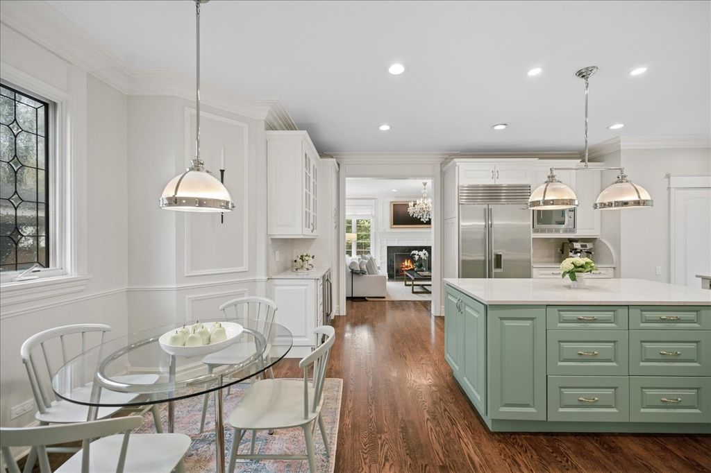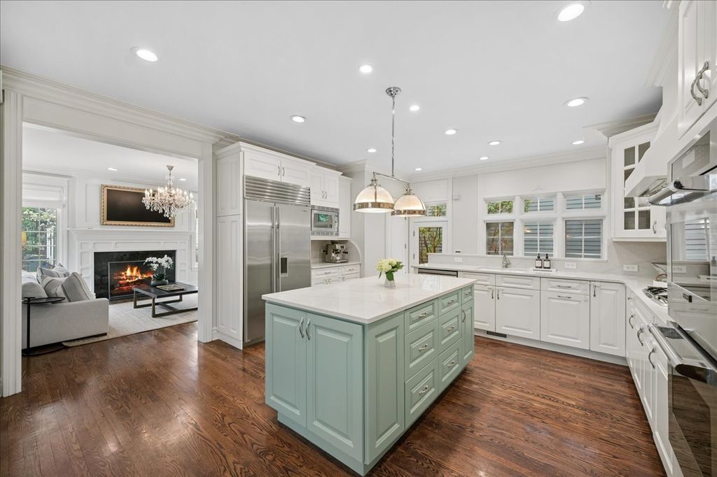 Enjoy easy North Shore living in this beautifully maintained East Winnetka home, where you'll catch glimpses of Lake Michigan right from your driveway. Built in 2005, this newer construction home offers a rare combination of quality craftsmanship, thoughtful updates, and a layout that truly works for everyday living. The updated kitchen is the heart of the home, featuring new quartz countertops, a classic subway tile backsplash, a new hood, custom cabinetry, high-end appliances (SubZero, Bosch, Thermador), and a generous island with space to gather. It opens seamlessly to the family room with fireplace-perfect for both daily routines and relaxed entertaining. Upstairs, the second level includes a spacious primary suite along with two additional bedrooms and a full bath. The third floor adds a fourth bedroom and full bath, offering great flexibility for guests, a home office, or additional living space. The bright and expansive lower level is designed for comfort and versatility, with generous recreation space, a second family room with built-ins and fireplace, a fifth bedroom, full bath, and laundry. Additional highlights include California Closets throughout, custom window treatments and plantation shutters, and beautiful built-ins. Outside, enjoy a brick paver driveway and patio along with a fully fenced backyard. Set on a quiet street just moments to Greeley Elementary, New Trier High School, beaches, town, the Green Bay Trail, parks, and Metra-this is a home that offers both convenience and an exceptional North Shore lifestyle.