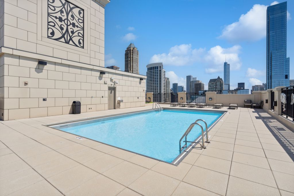 Welcome home to this gorgeous 1 bedroom, 1.1 bath at the luxurious 10 E. Delaware. One of Lucien Lagrange's newer construction high rises, this south facing beautifully upgraded home offers an open layout, hardwood floors throughout, floor to ceiling windows with custom window treatments. Stunning kitchen with custom cabinetry and marble counters offers ample storage and top-of-the-line Sub-Zero appliances. Beautifully appointed large bedroom with an organized walk-in closet, sumptuous marble bath with a double vanity and a European tub/shower. Enjoy city views from your large private balcony. Perfectly located just steps from Michigan Avenue, fantastic restaurants, Oak street beach, coffee shops, grocery stores, and great shopping. Wonderful high end amenities include 24 hour doorman, rooftop swimming pool, state of the art fitness center, sundeck, gardens and a club room for private events. One prime garage parking spot in a heated garage is included in price.